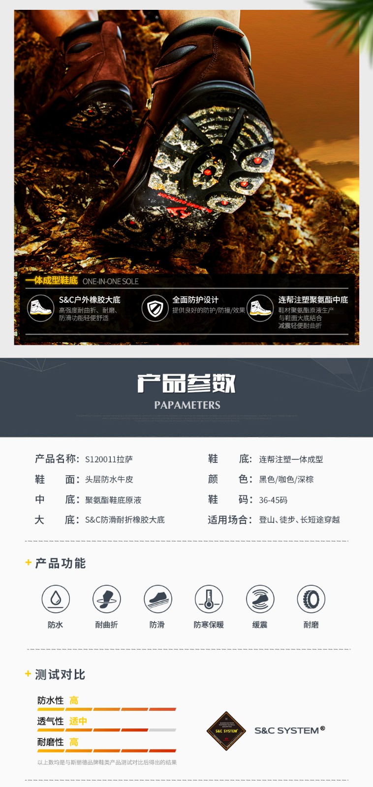 SLEADER(斯立德)户外徒步鞋旅行沙漠登山鞋防水防滑男女高帮越野耐磨靴子 S120011 斯丽德拉萨