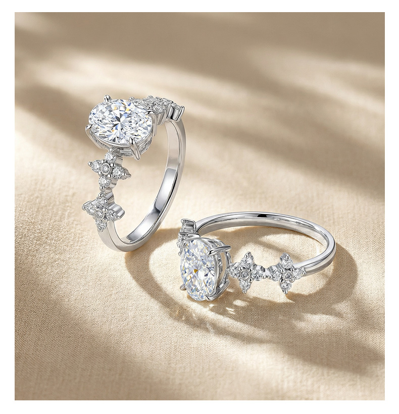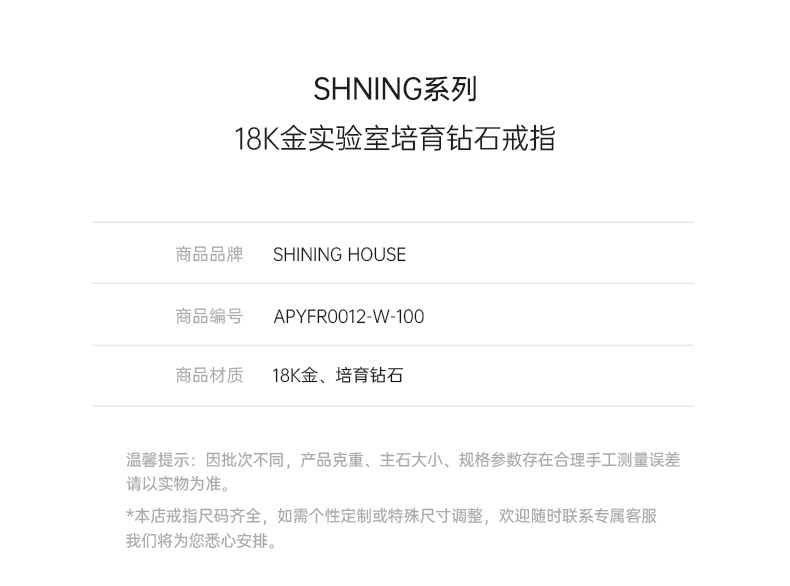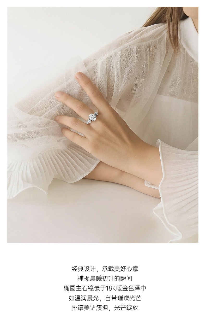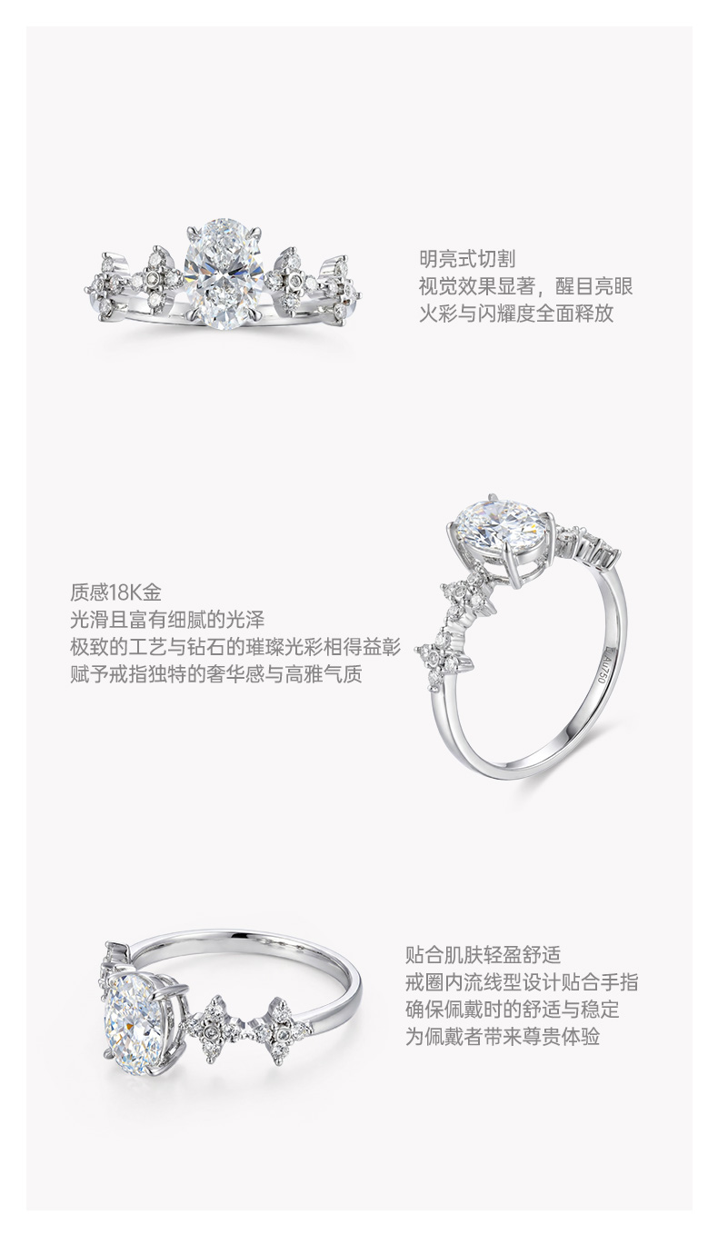ShiningHouse[培育] 18k金钻石戒指 椭圆形1克拉钻人工真钻人造钻石K金戒指时尚钻石戒指悦己送礼臻选【此商品不支持7天无理由退货退款】预计3日发货