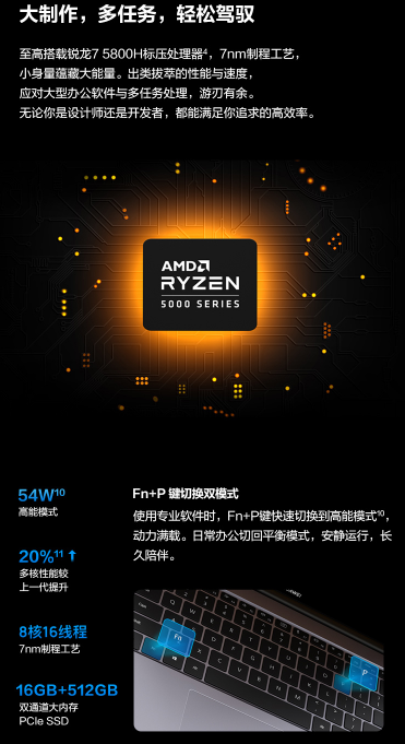HUAWEI MateBook 16 轻薄高性能办公笔记本 16英寸Inter11(16+512G))