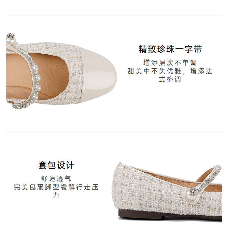 伊伴秋季优雅小香风舒适通勤低跟便鞋单鞋B25461006