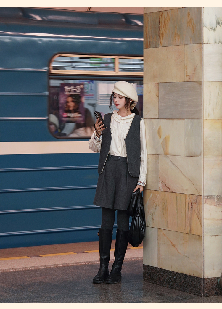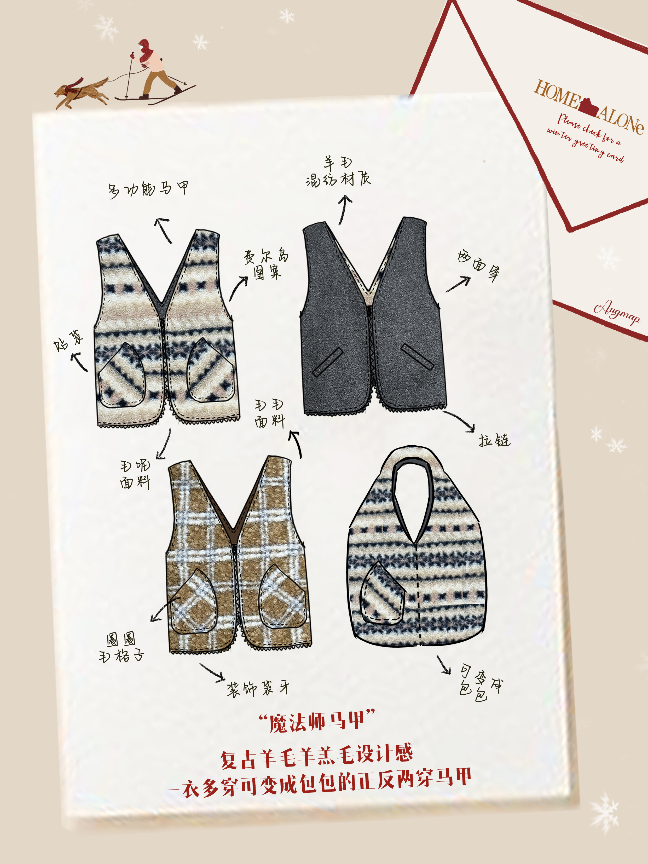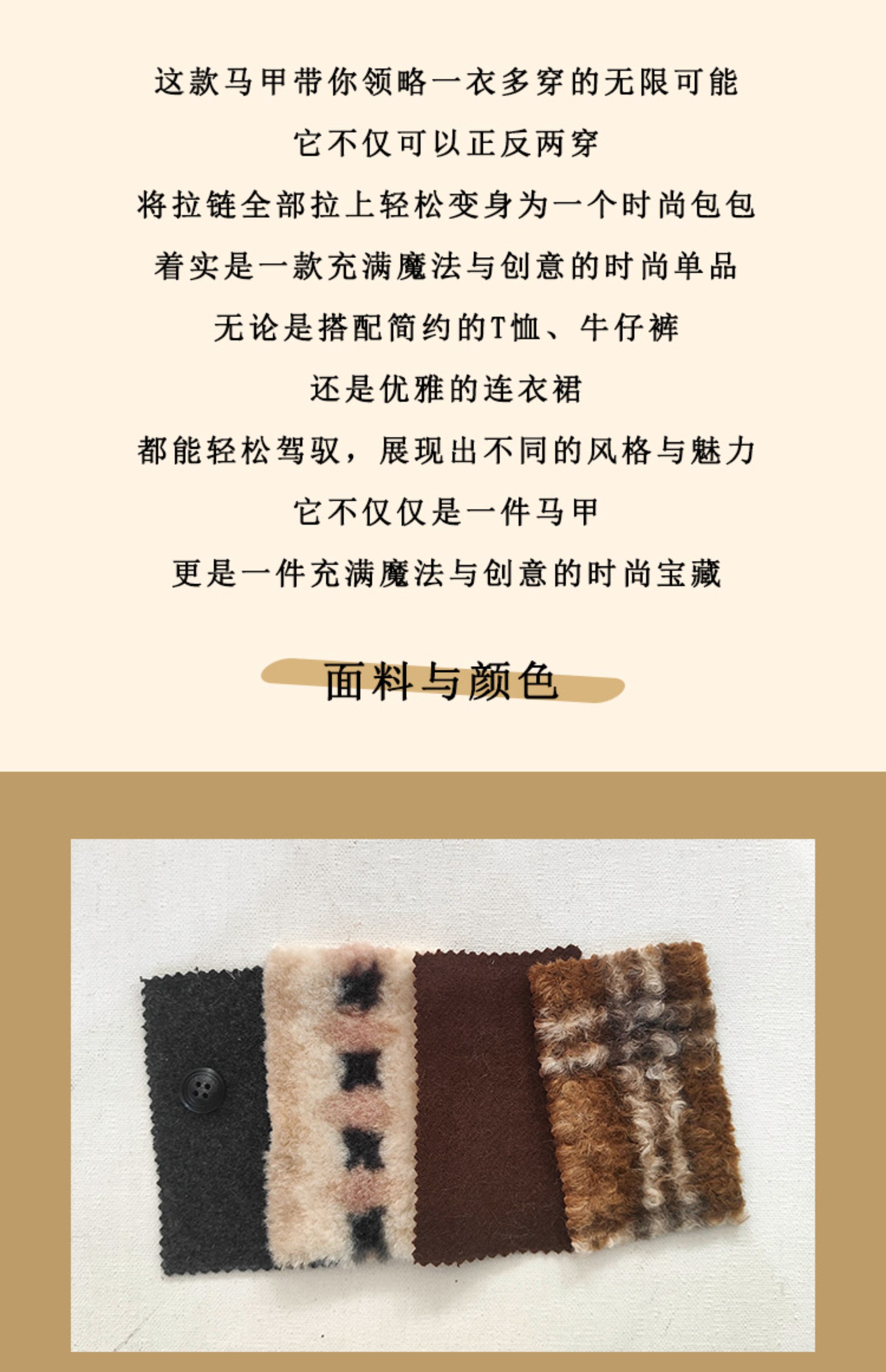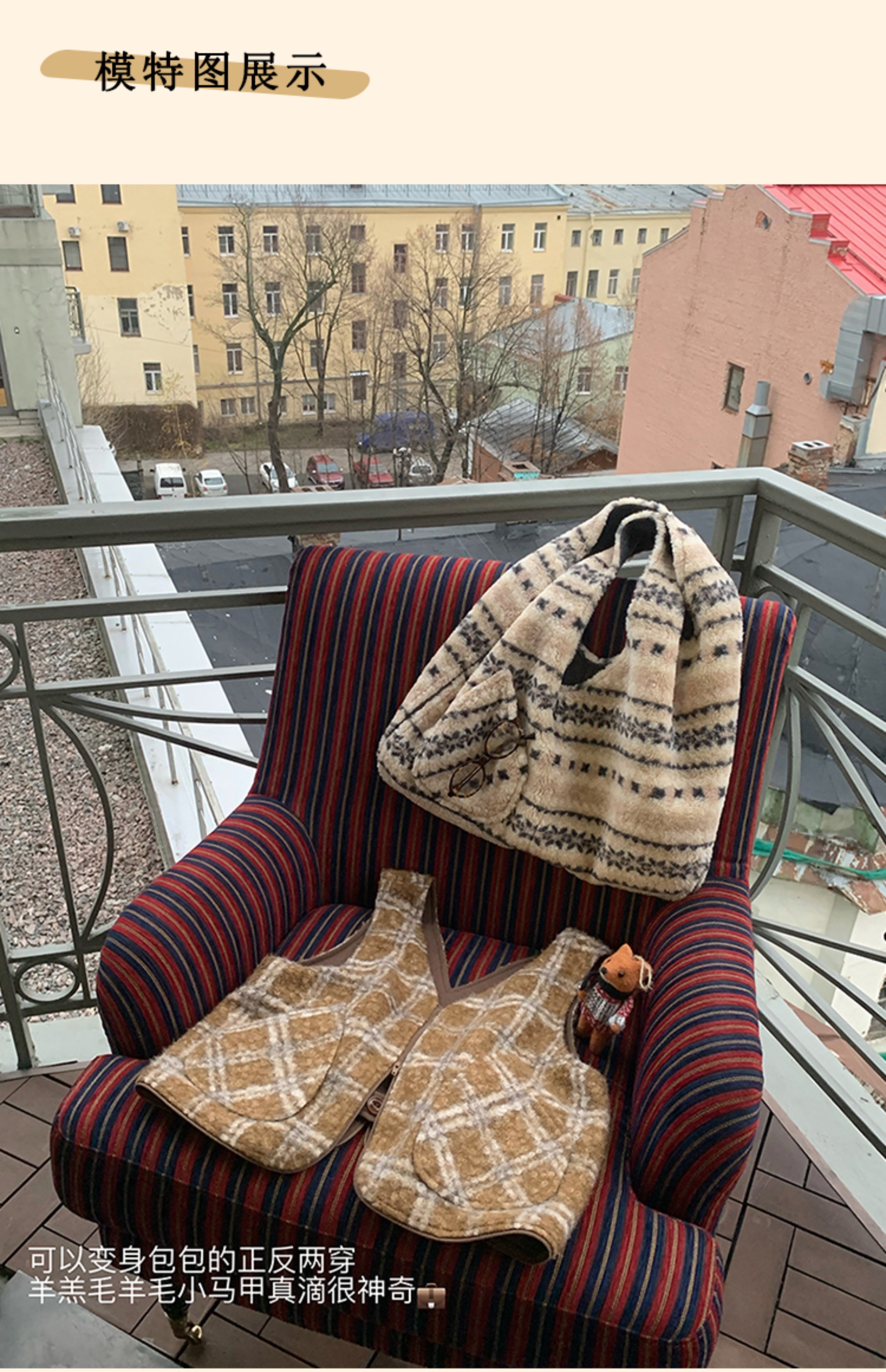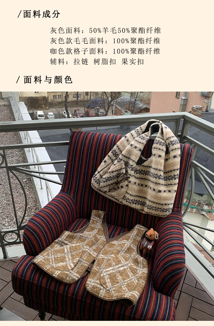 浮生八记/24D197/复古羊羔毛一衣多穿可变包包两穿马甲