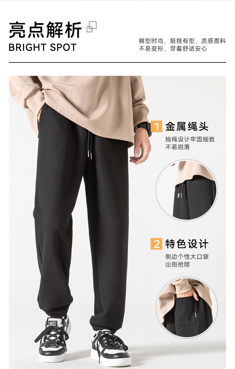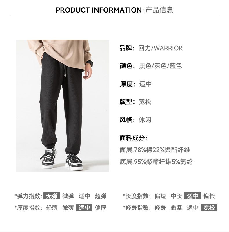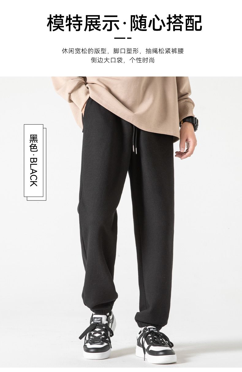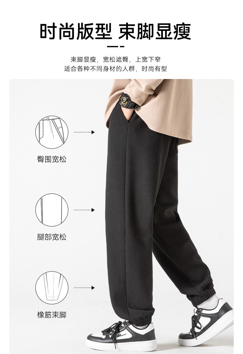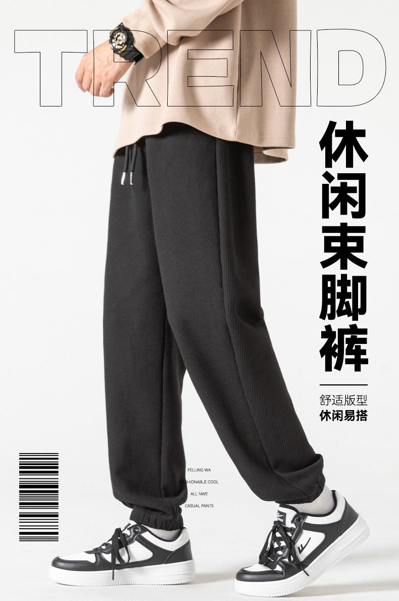 回力华夫格裤男士2025春秋新款束脚宽松休闲长裤潮流运动裤子卫裤