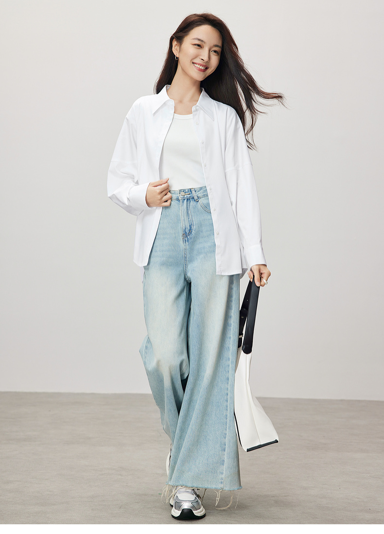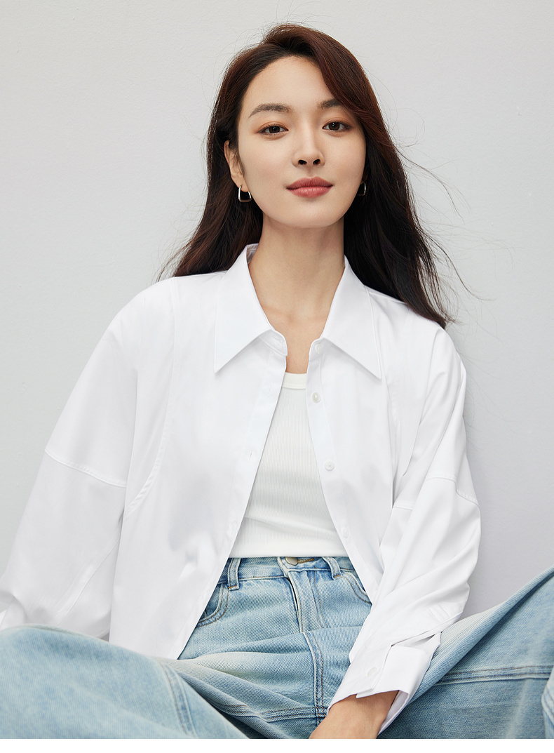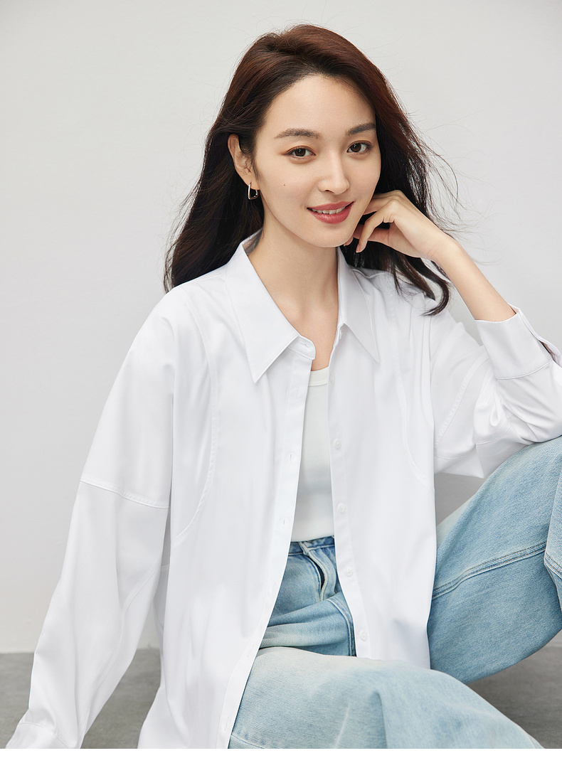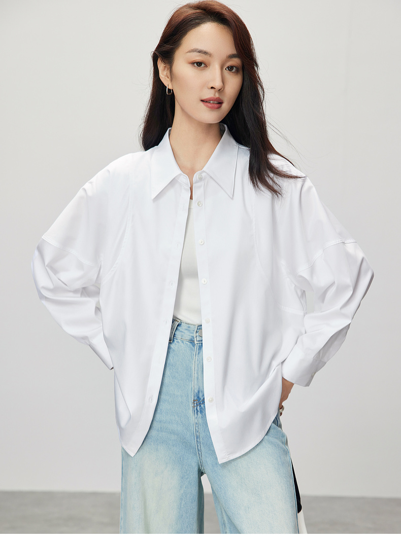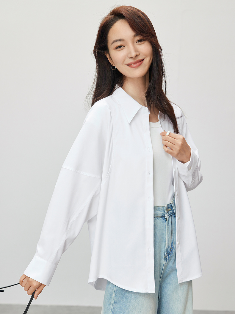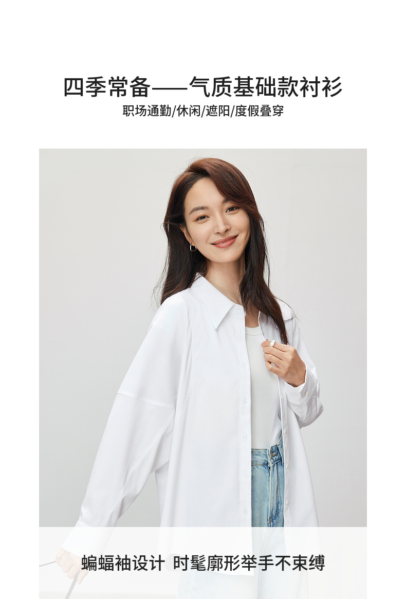 【内购】【基础款衬衫 】气质通勤白月光气质四季基础款蝙蝠袖衬衫-151C80074X