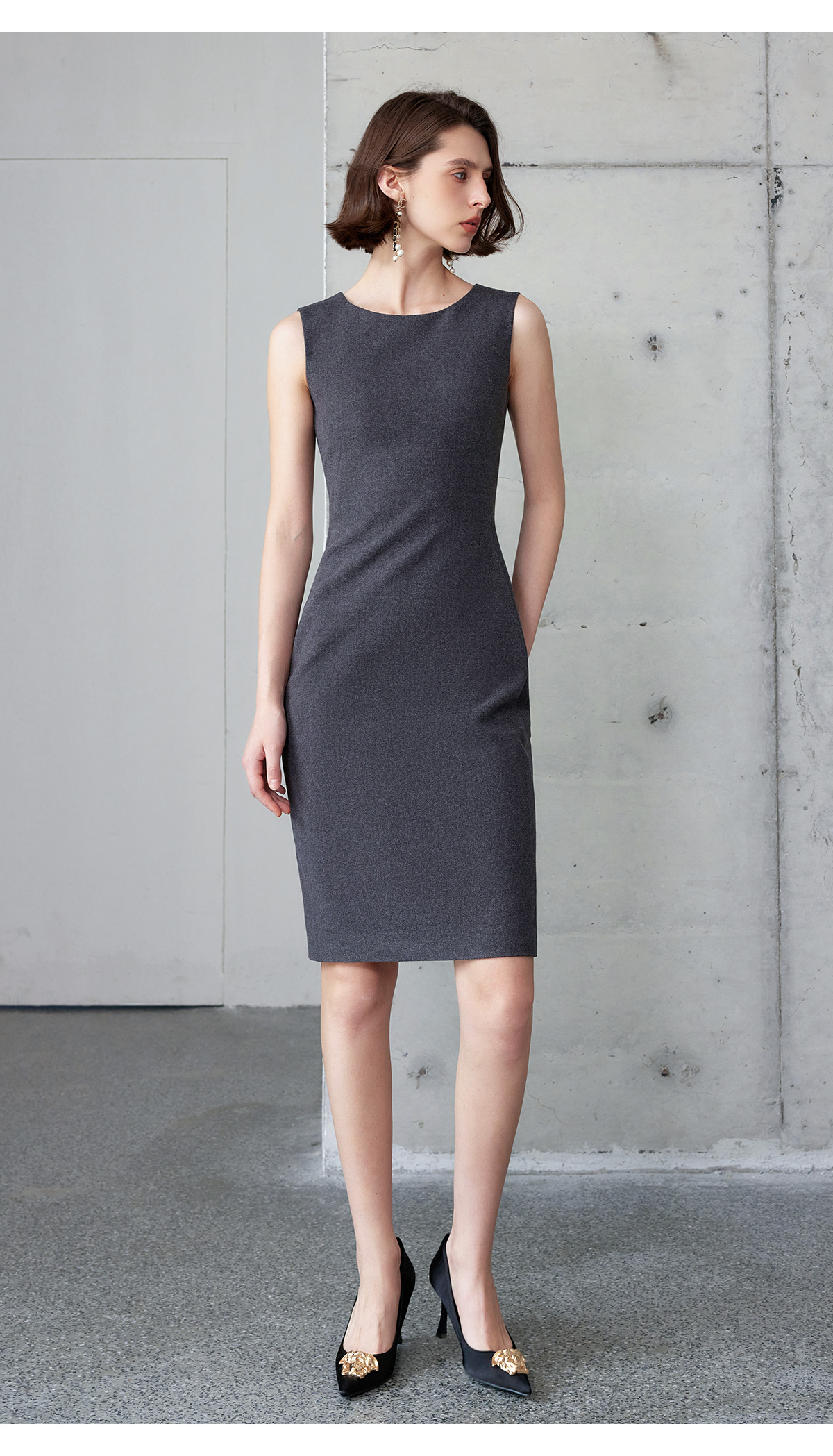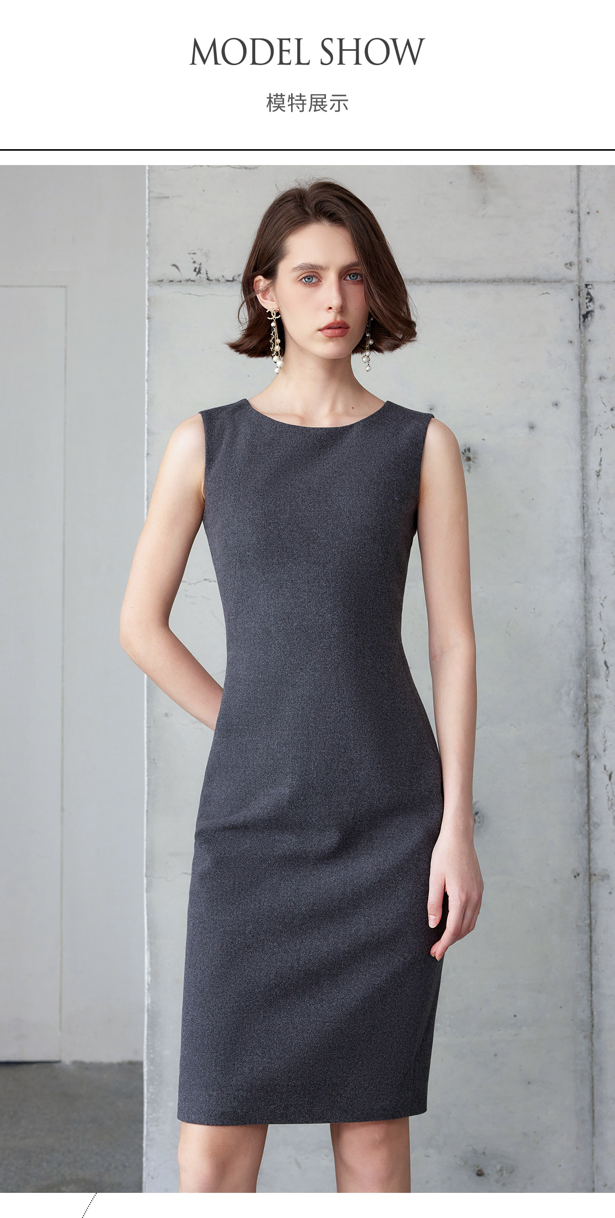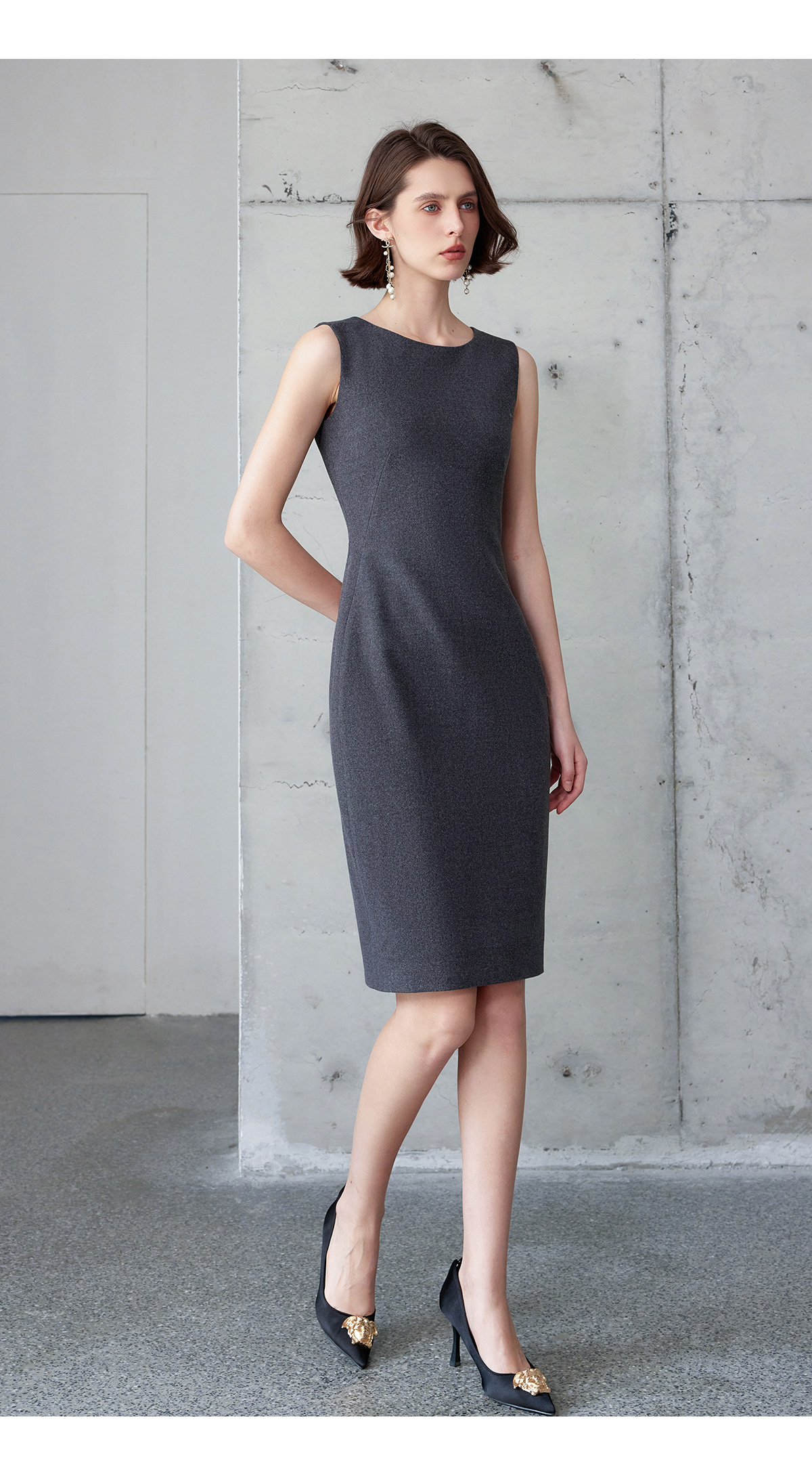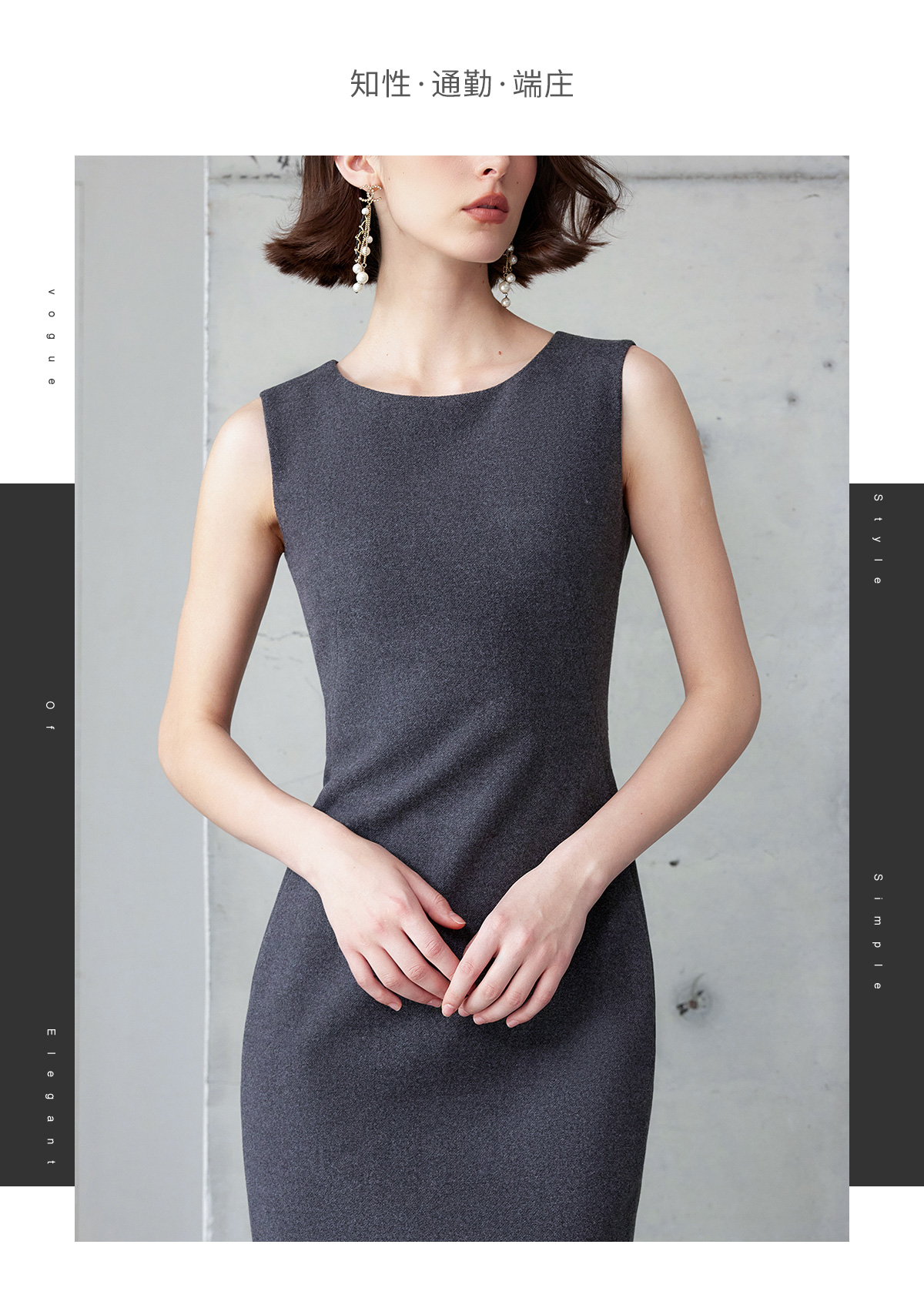 IWY/厚款气质修身无袖连衣裙女秋冬知性灰色毛呢中长款包臀裙Q1225
