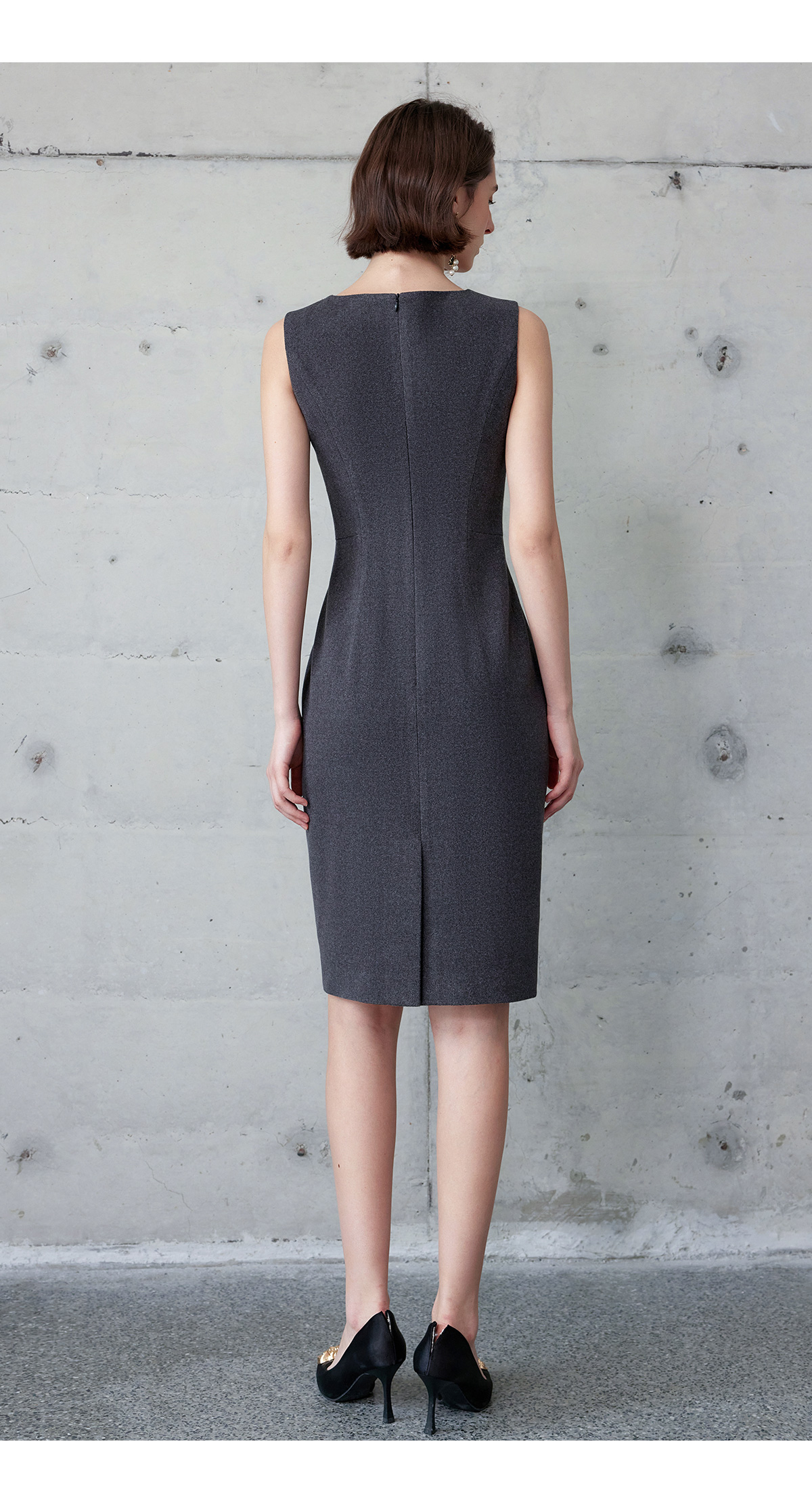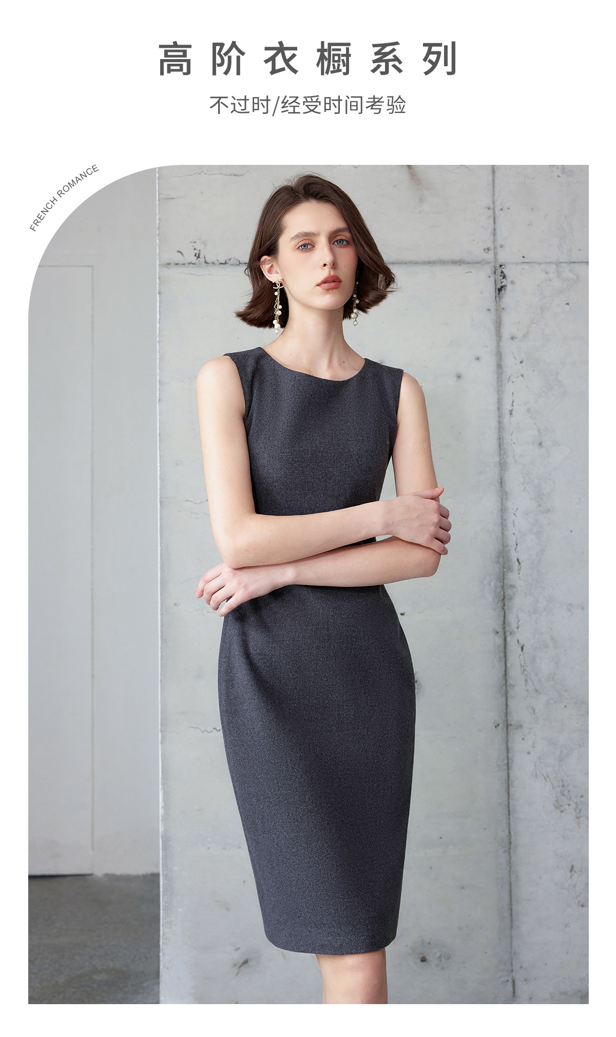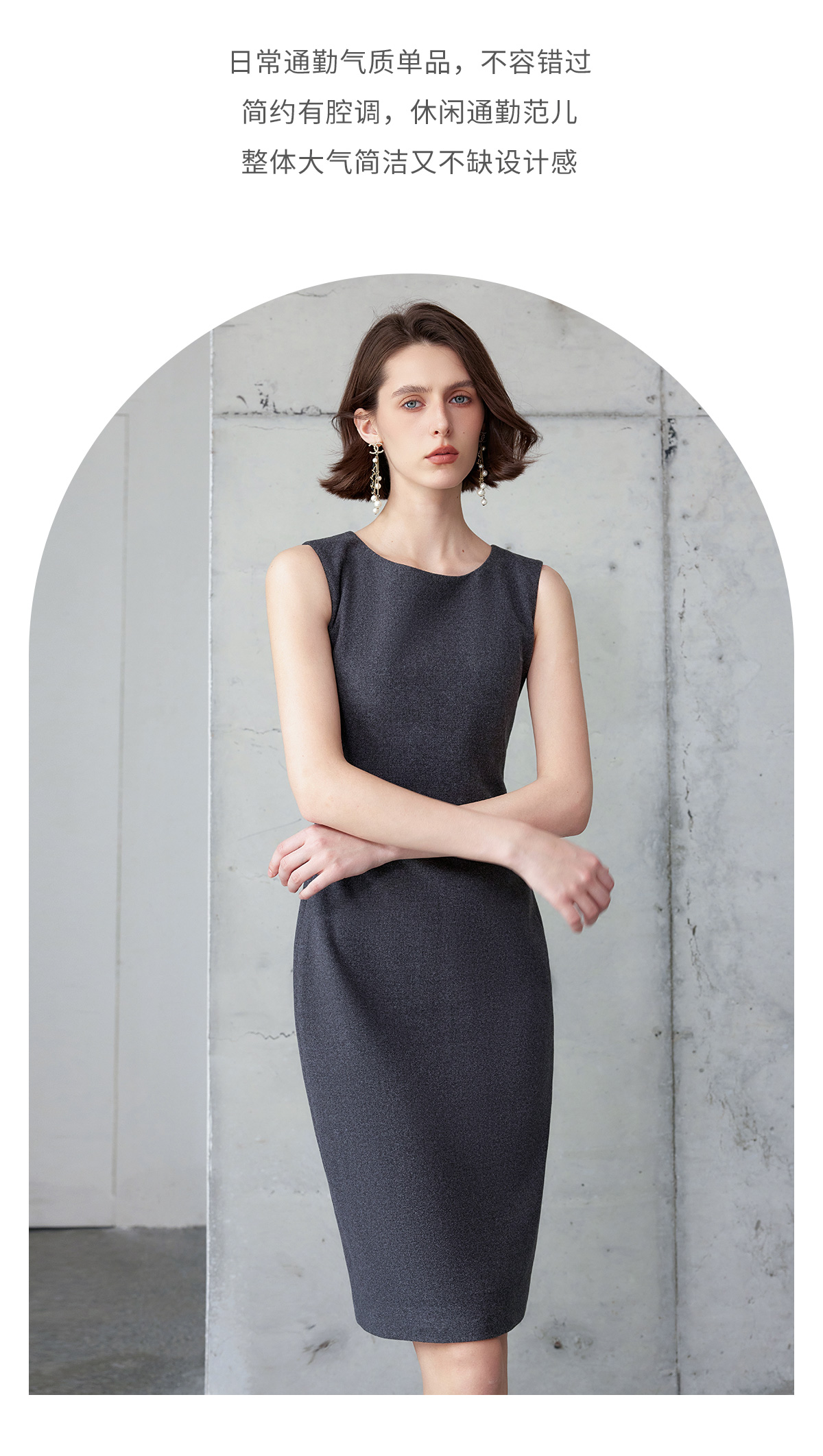 IWY/厚款气质修身无袖连衣裙女秋冬知性灰色毛呢中长款包臀裙Q1225