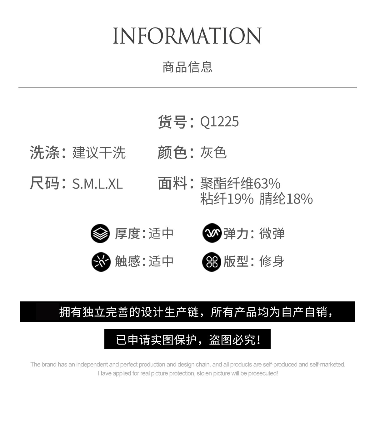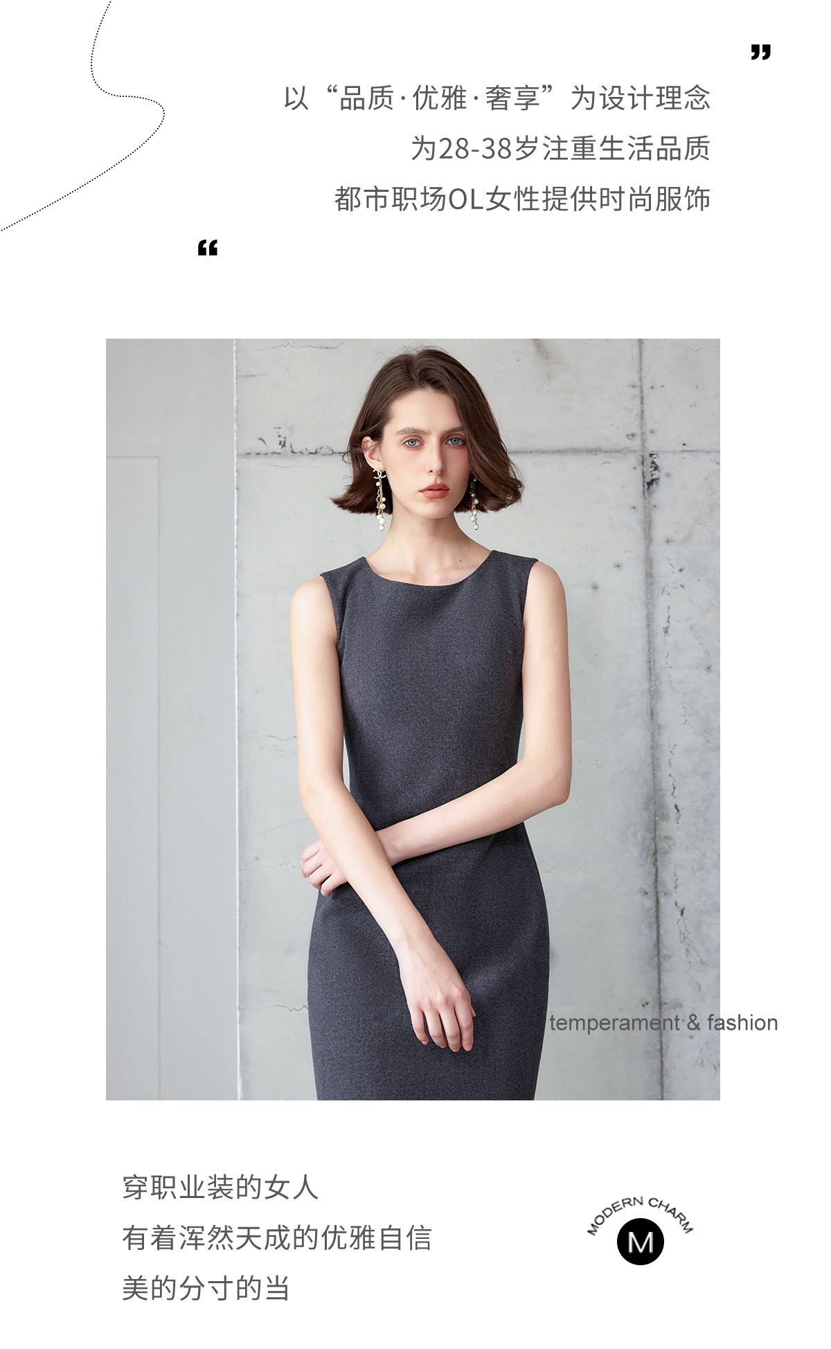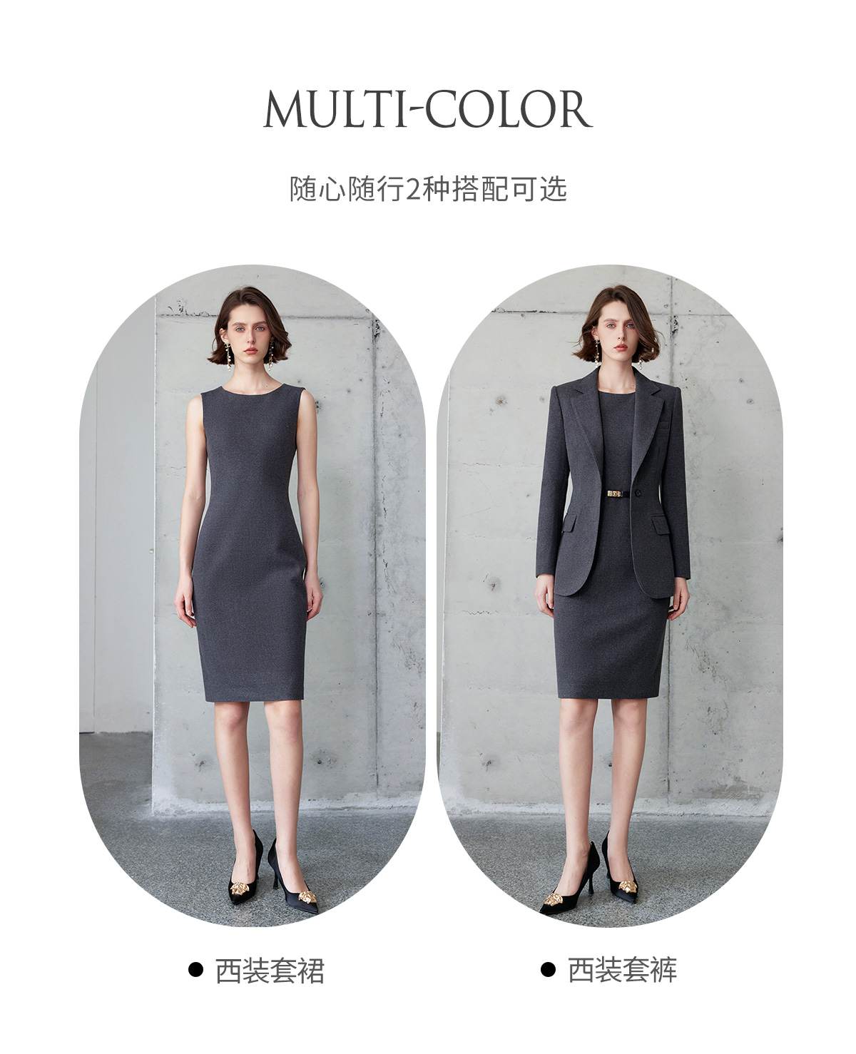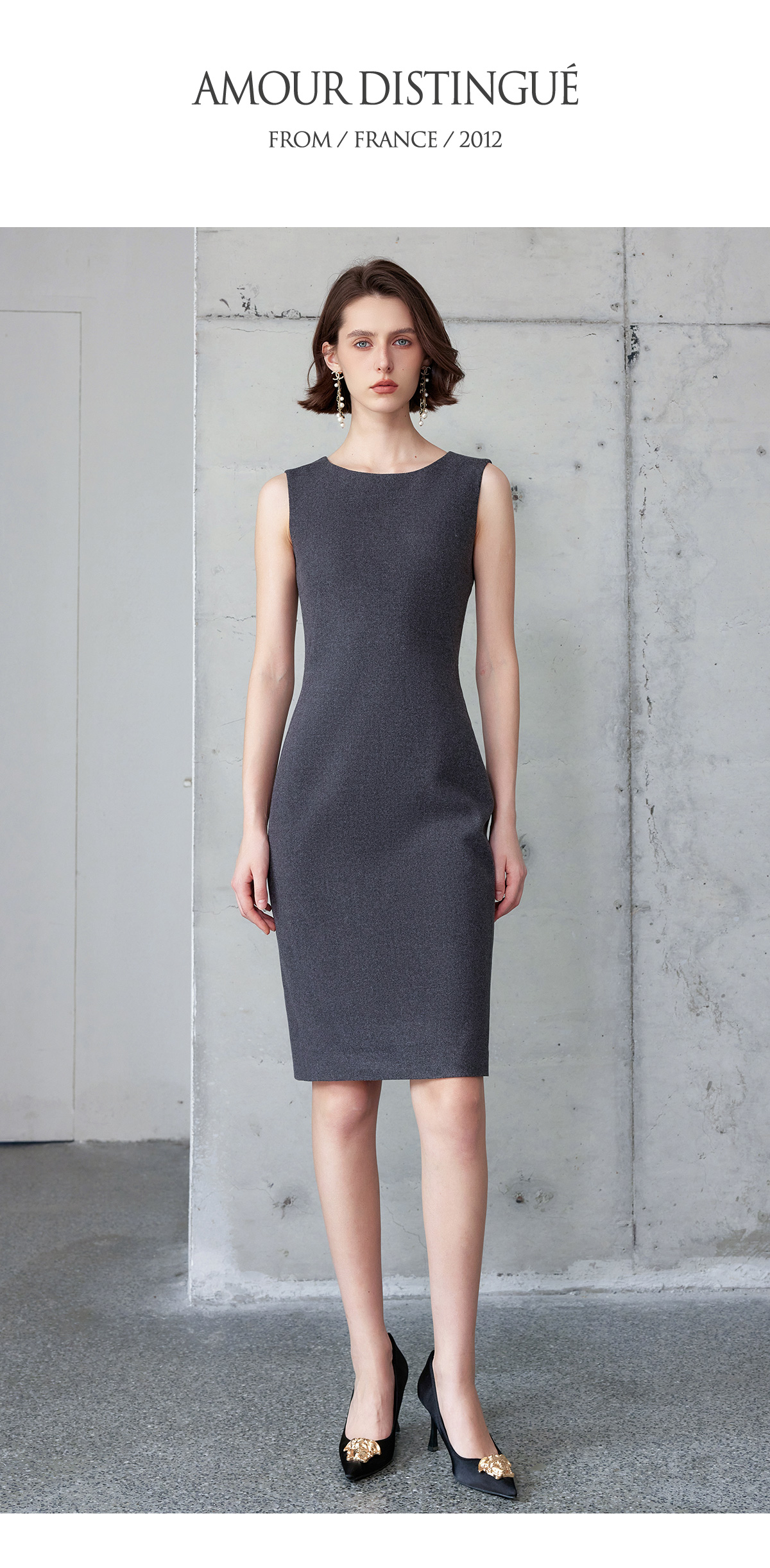 IWY/厚款气质修身无袖连衣裙女秋冬知性灰色毛呢中长款包臀裙Q1225