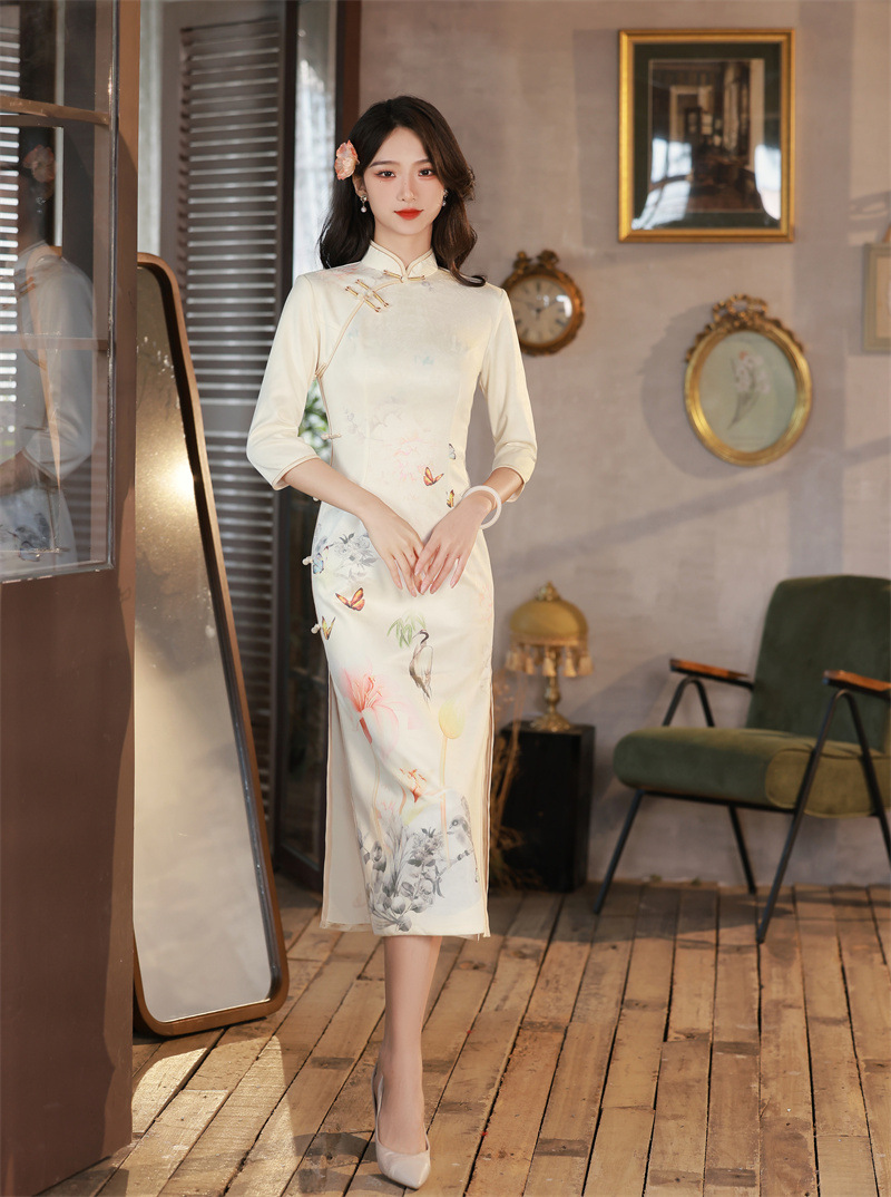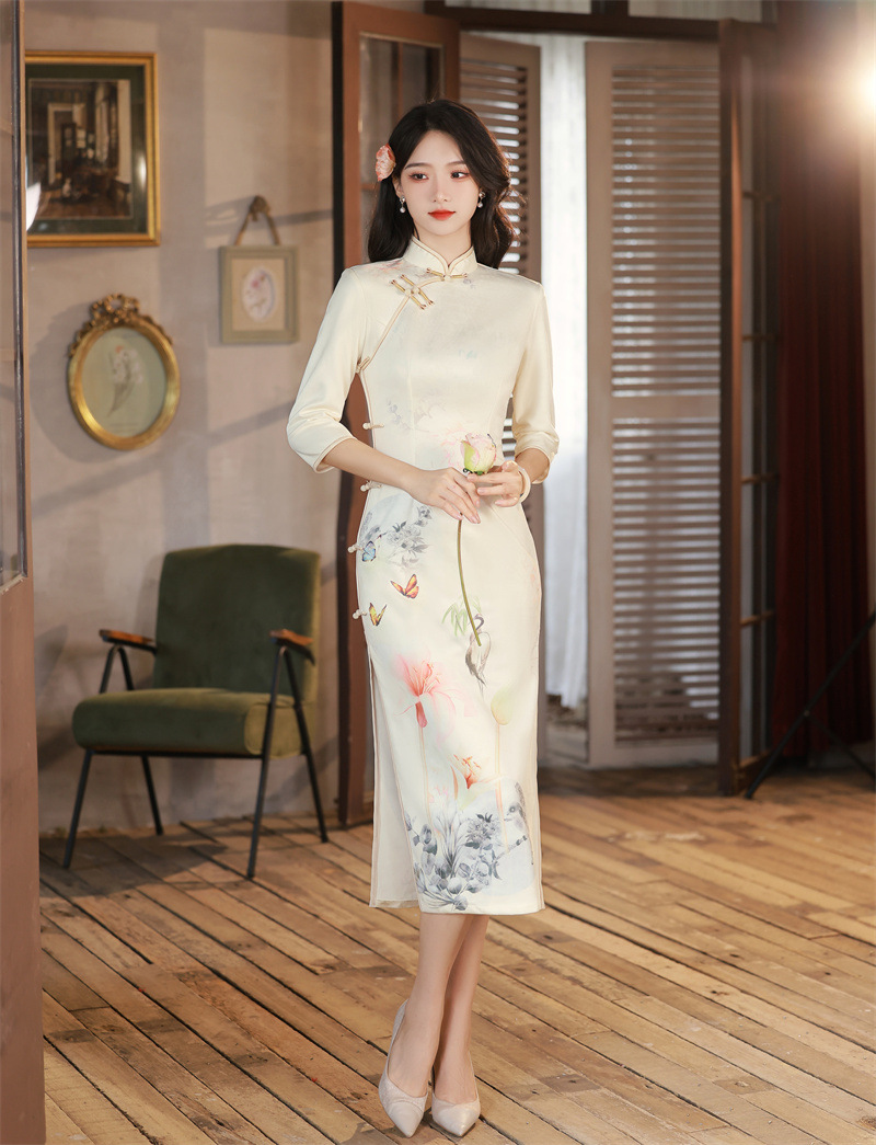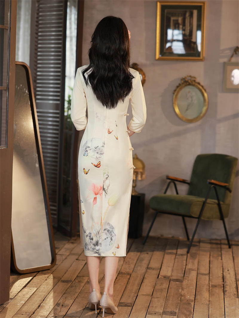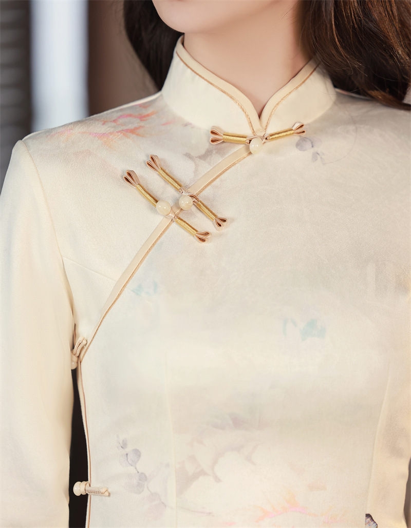 麂皮绒年轻少女款,长款印花旗袍GX-178537