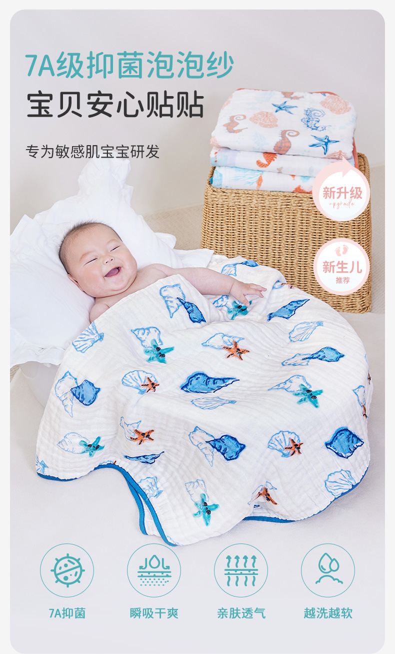 i-baby抑菌防螨低敏纱布婴幼儿童浴巾