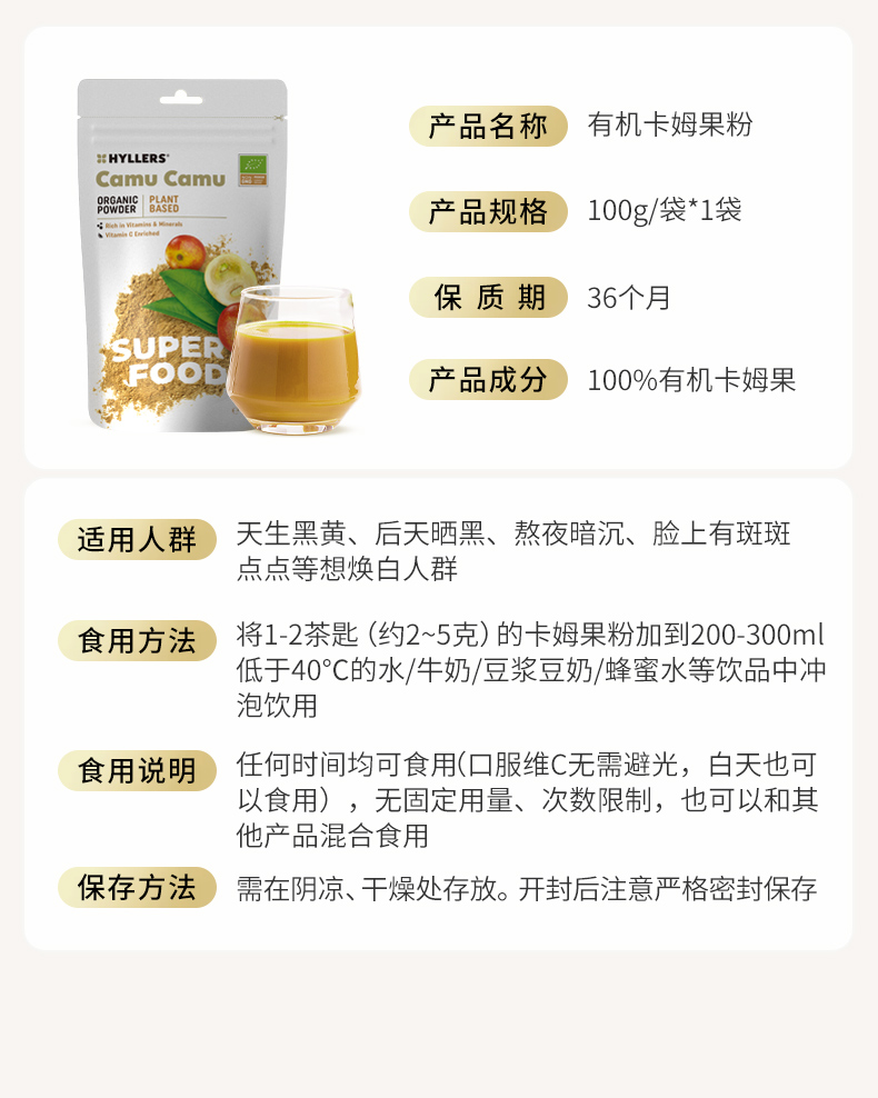 (保税直发)芬兰原产 有机卡姆果VC粉100g/袋 A-4881