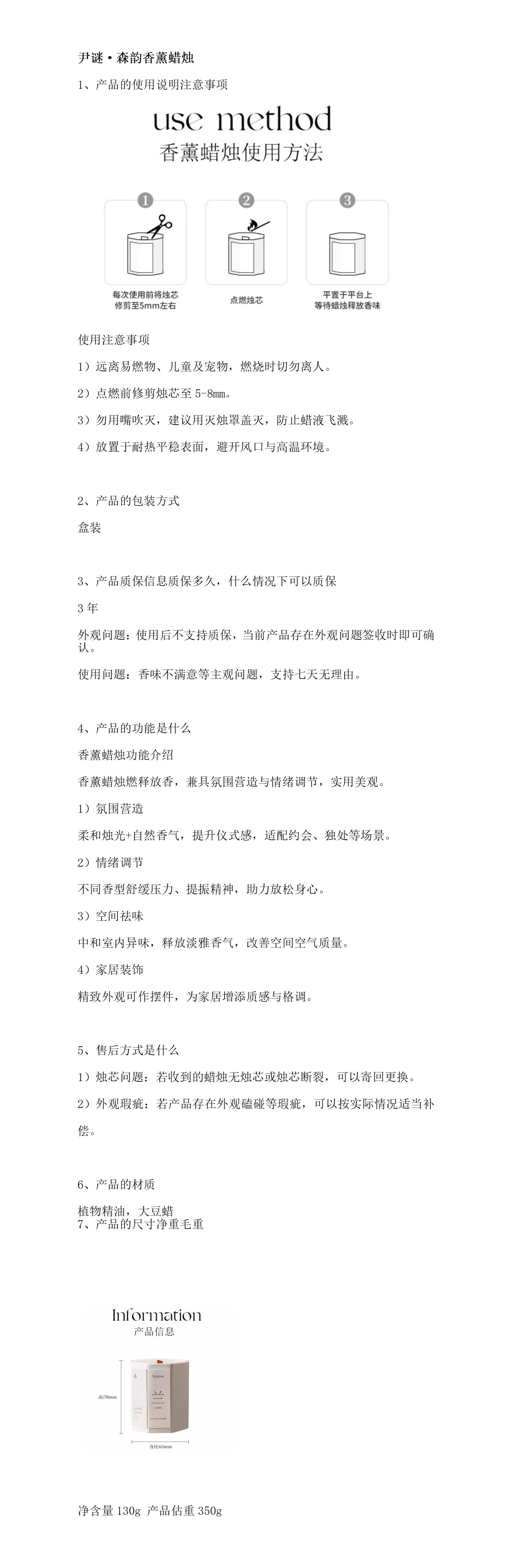 【360°环绕散香 科学温和配方】【任选三件99】尹谜无火香薰/香薰蜡烛/扩香石 进口香料 香味温和不刺鼻