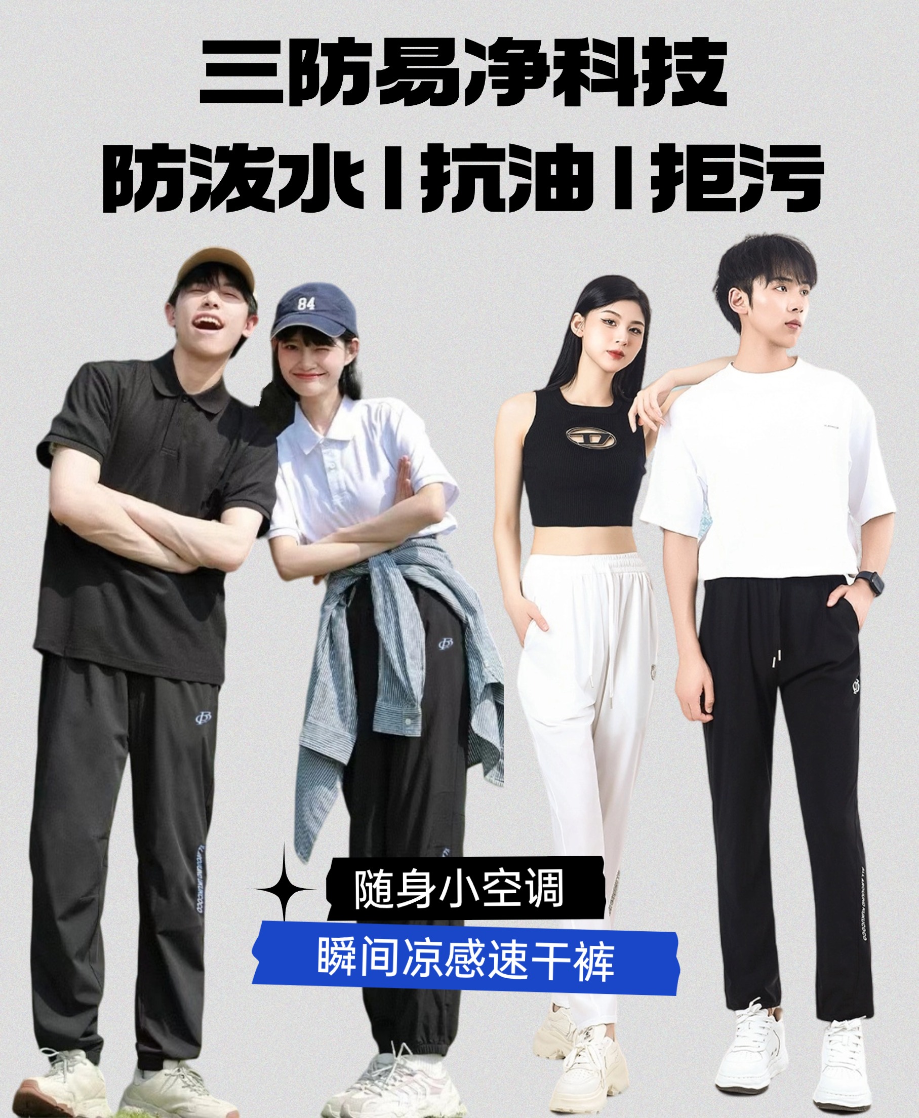 【59.9购】情侣三防冰感裤丨上身即感清凉空调裤 防水防污防油运动裤