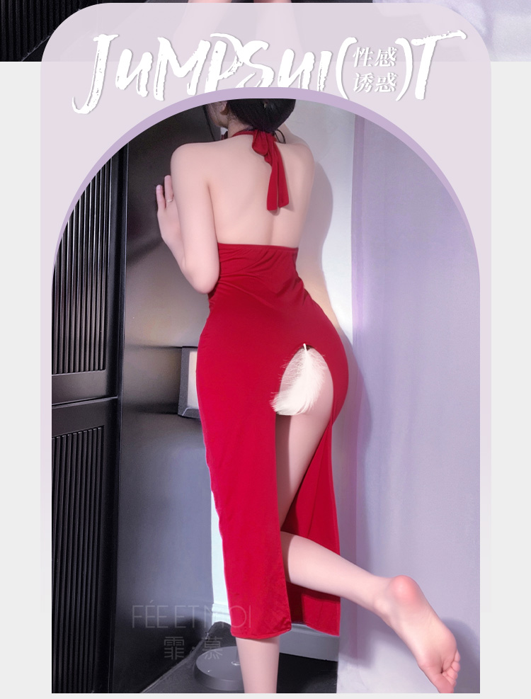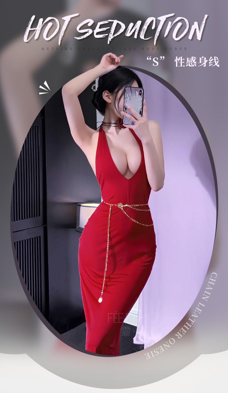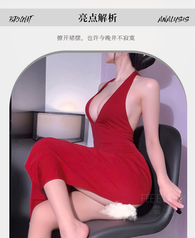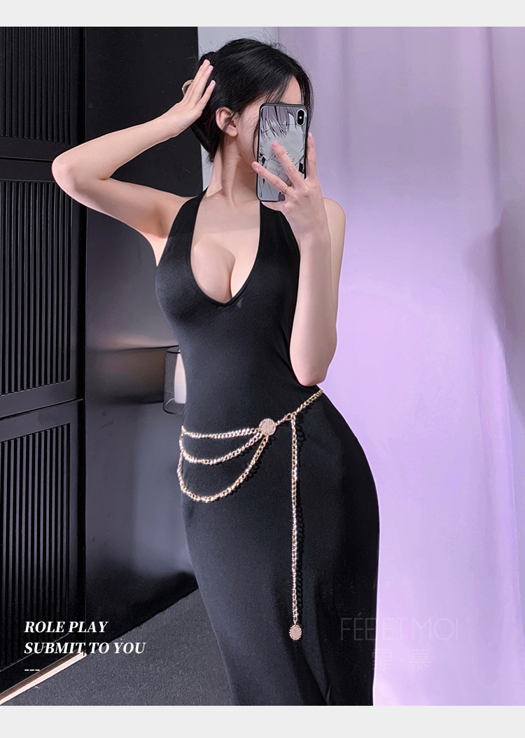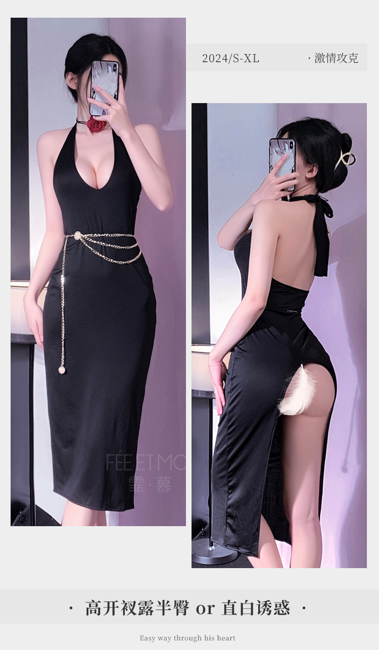 霏慕法式名媛深V露臀连衣裙6247 情趣内衣新款长裙性感睡衣攻速战袍高档制服露臀免脱诱惑