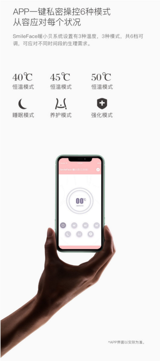 50℃恒温档适合姨妈期间,剧烈痛时配合强化模式,帮助暖宫,一定程度上缓解痛经。