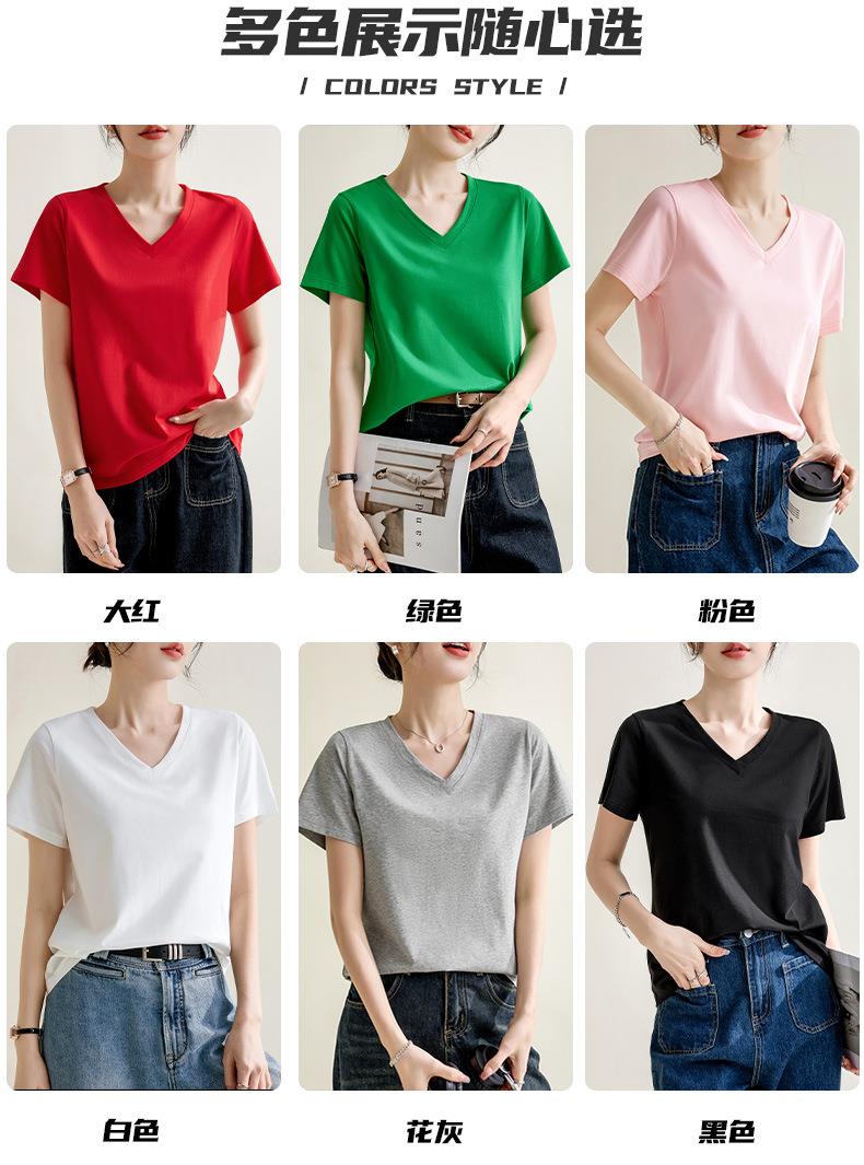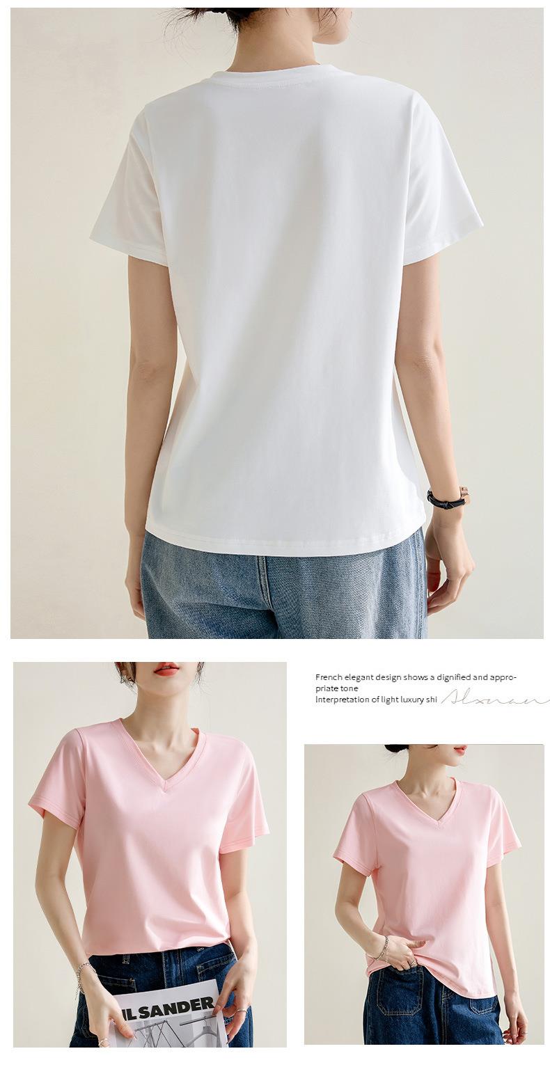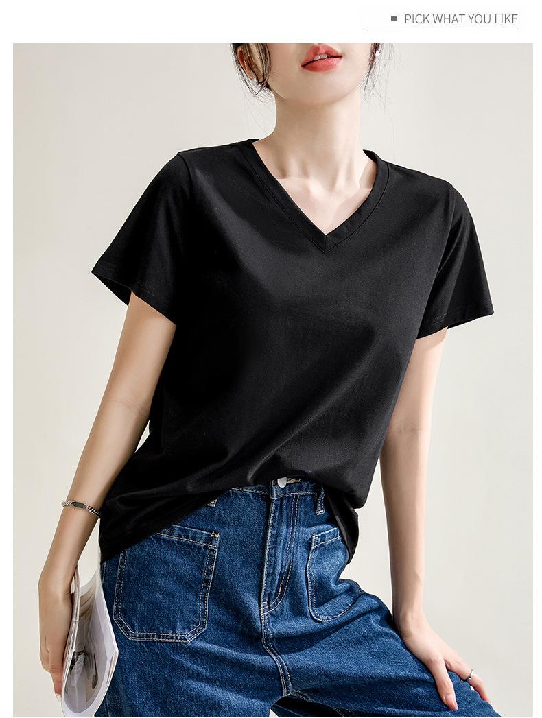 气质纯色正肩V领棉T恤女2024春夏新款宽松显瘦内搭套头短袖上衣