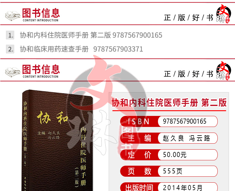 正版 协和内科住院医师手册 第2版 第二版 协和临床用药速查手册 共两册 套装 中国协和医科大学出版社 升级版 赵久良 冯云路 主编