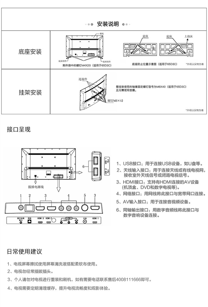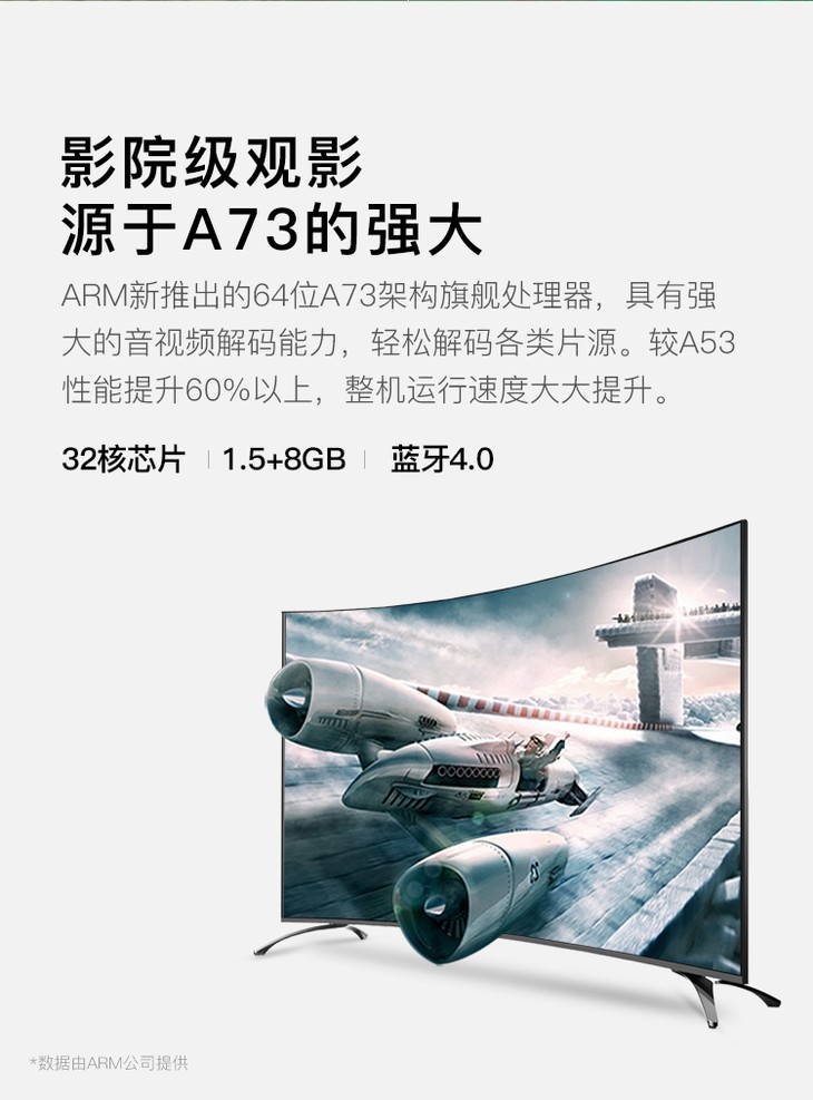 长虹 65D3C 65英寸电视 32核4K超高清HDR 曲面人工智能液晶智能平板电视机(黑色)