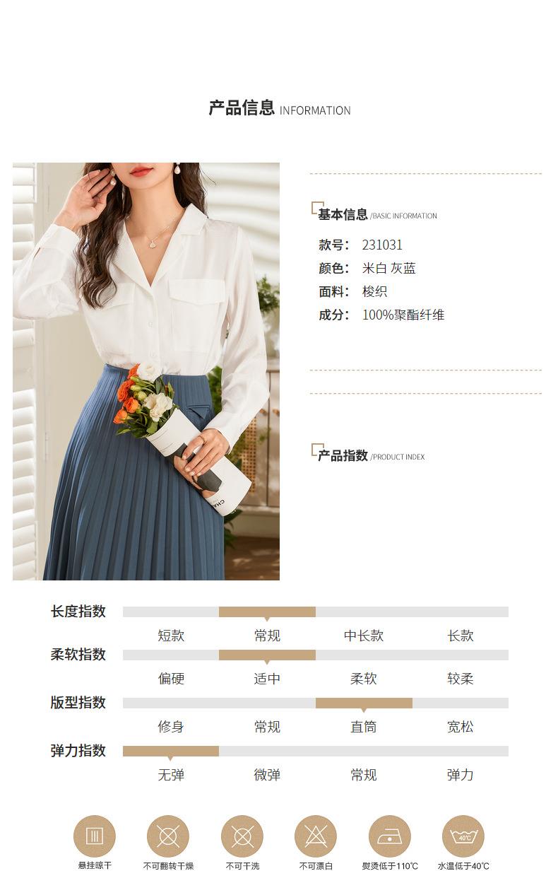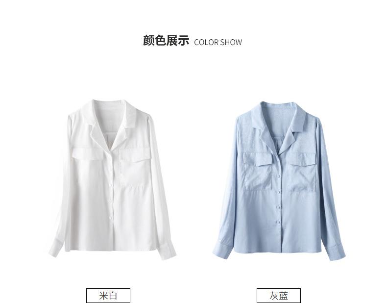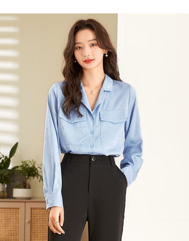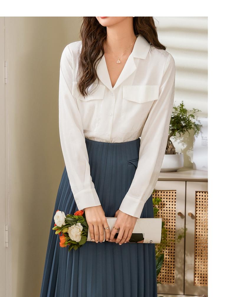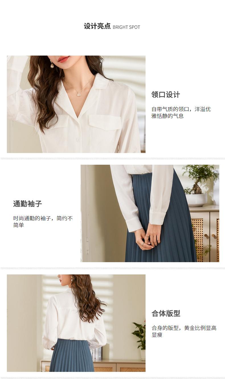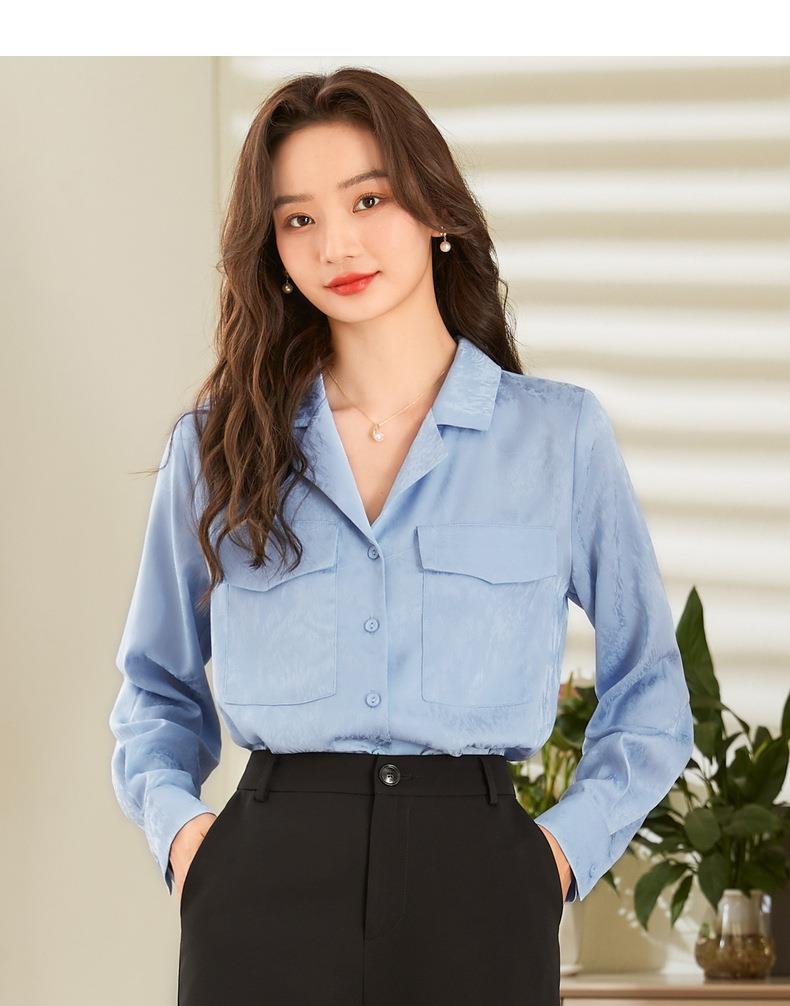 百姿 小西装领长袖衬衫2023春季新款纯色简约百搭大口袋职业衬衣