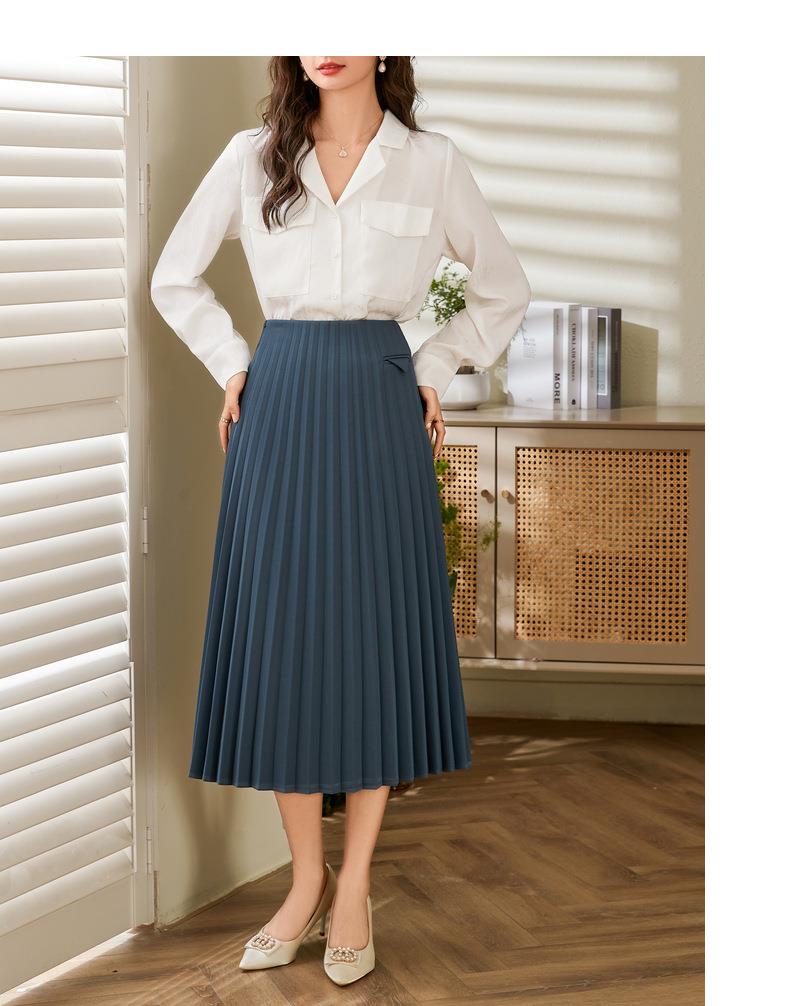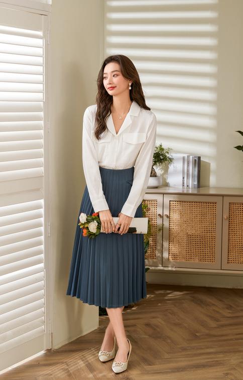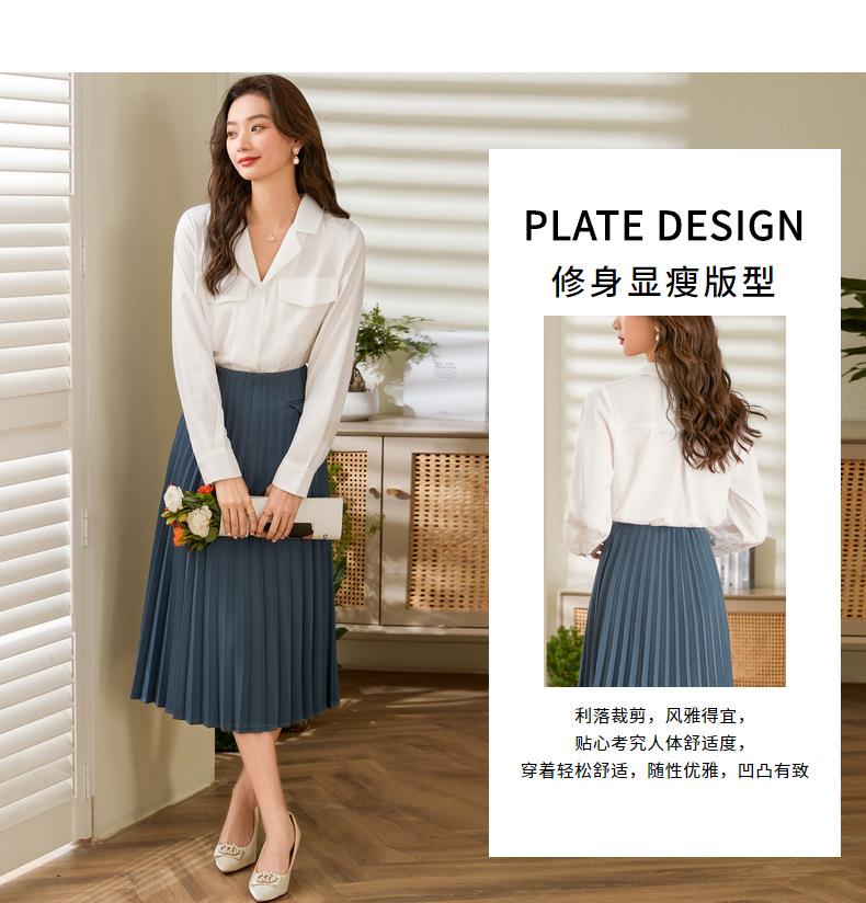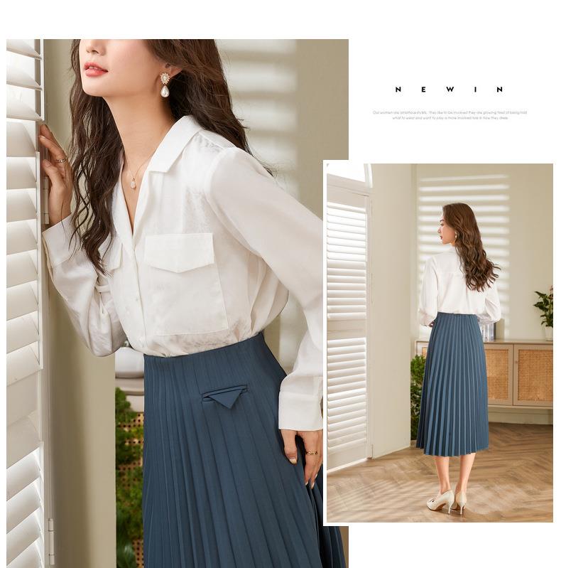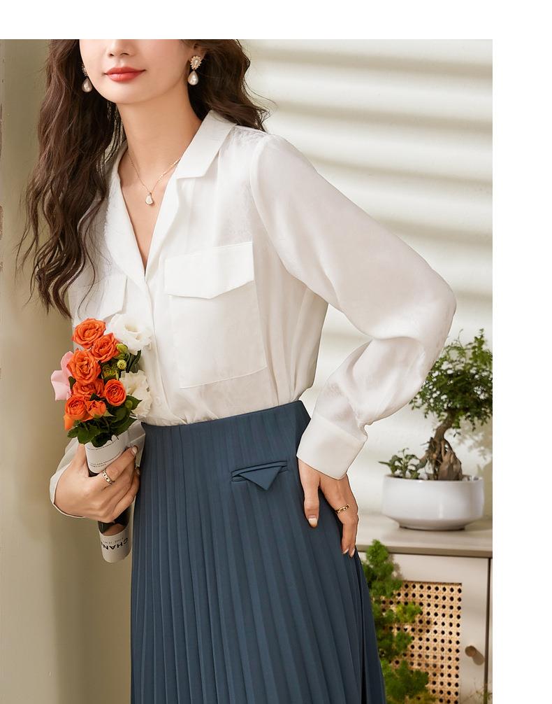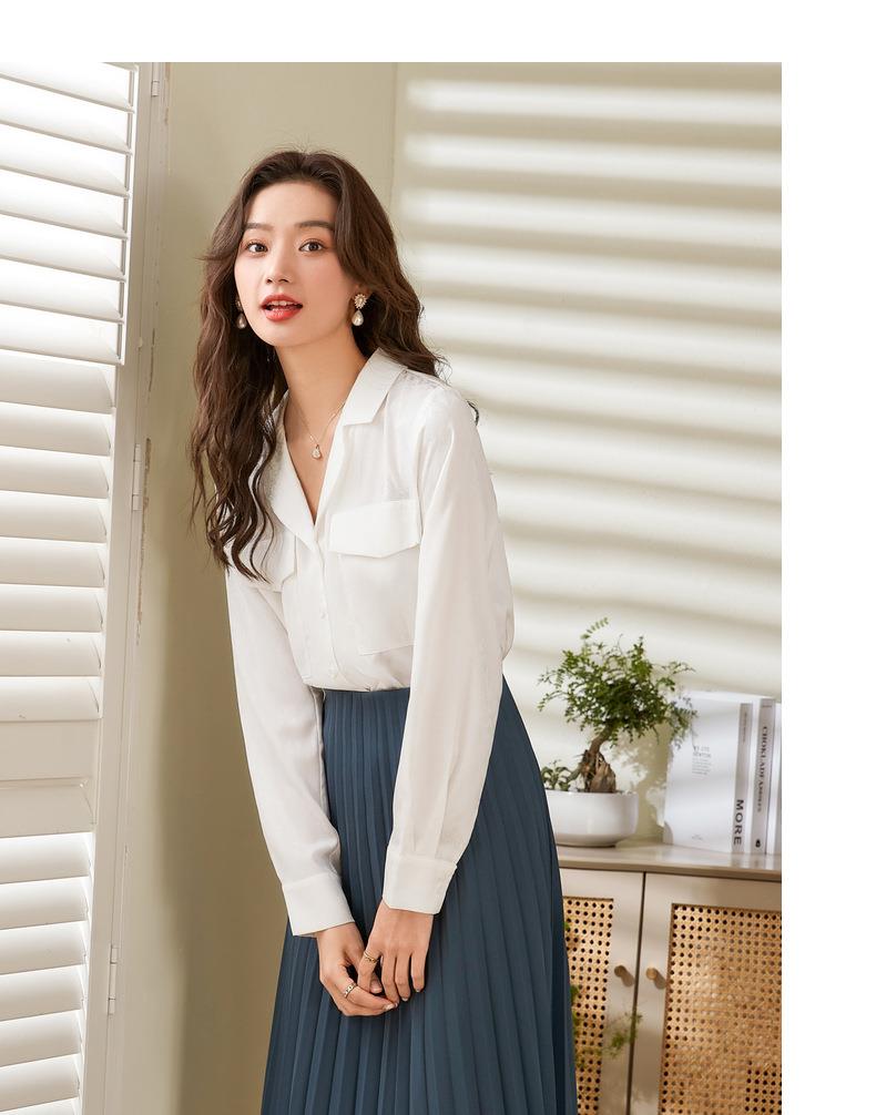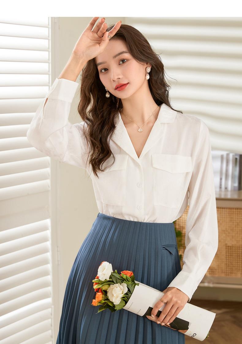 百姿 小西装领长袖衬衫2023春季新款纯色简约百搭大口袋职业衬衣