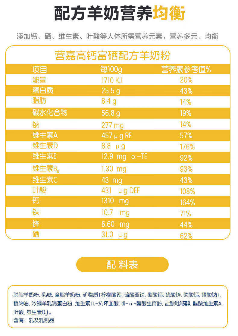 佳贝艾特-高钙富硒配方羊奶粉800g