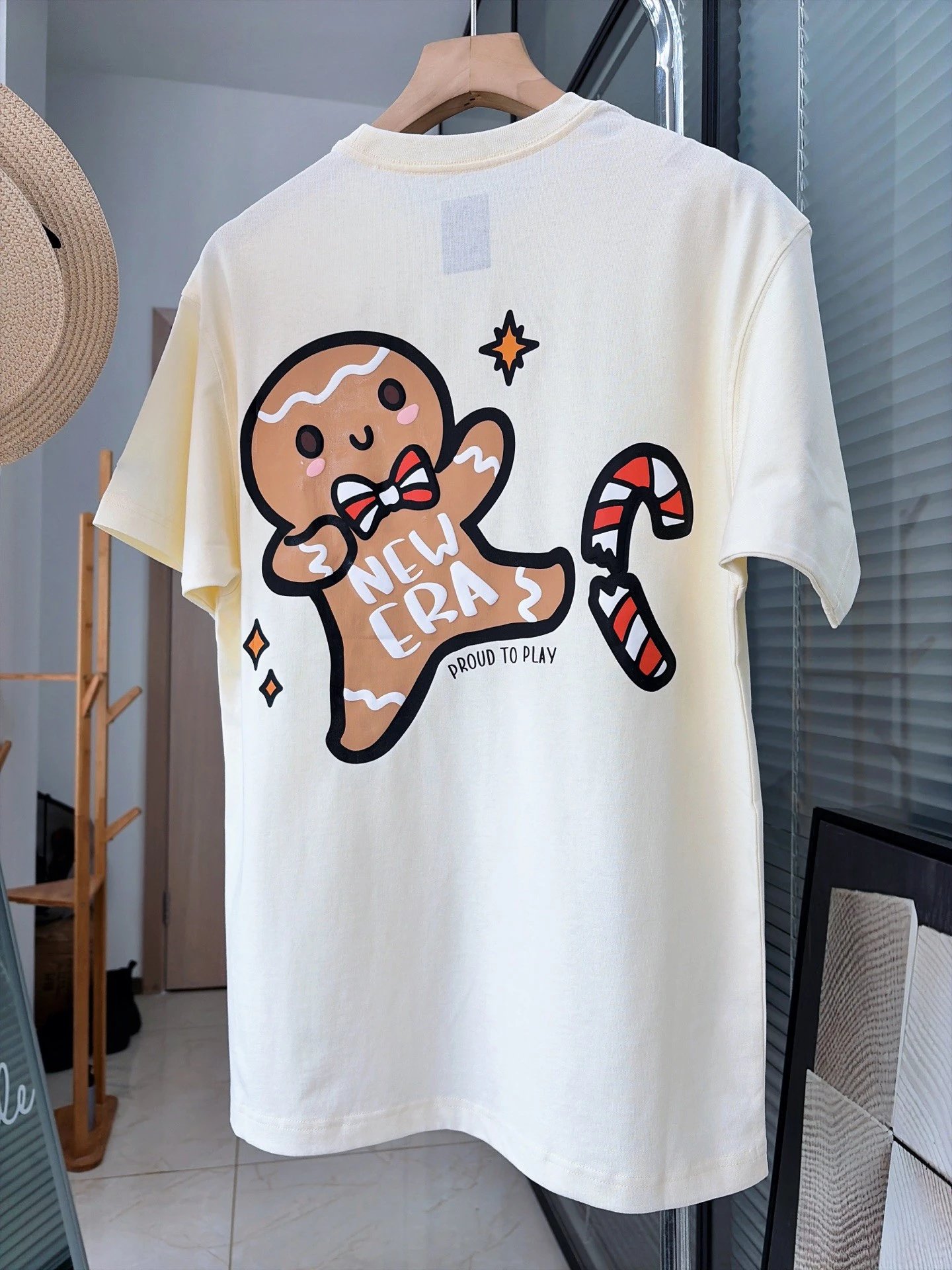 超大号姜饼人主题印花,搭配NEW ERA品牌字样、拐杖糖和星星元素,视觉冲击力强,街头感拉满