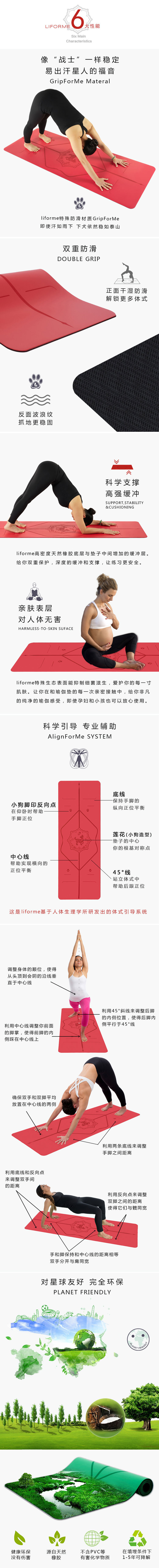 LIFORME专业体位线慈善狗年版瑜伽垫双面防滑天然橡胶健身练功瑜珈垫女加宽