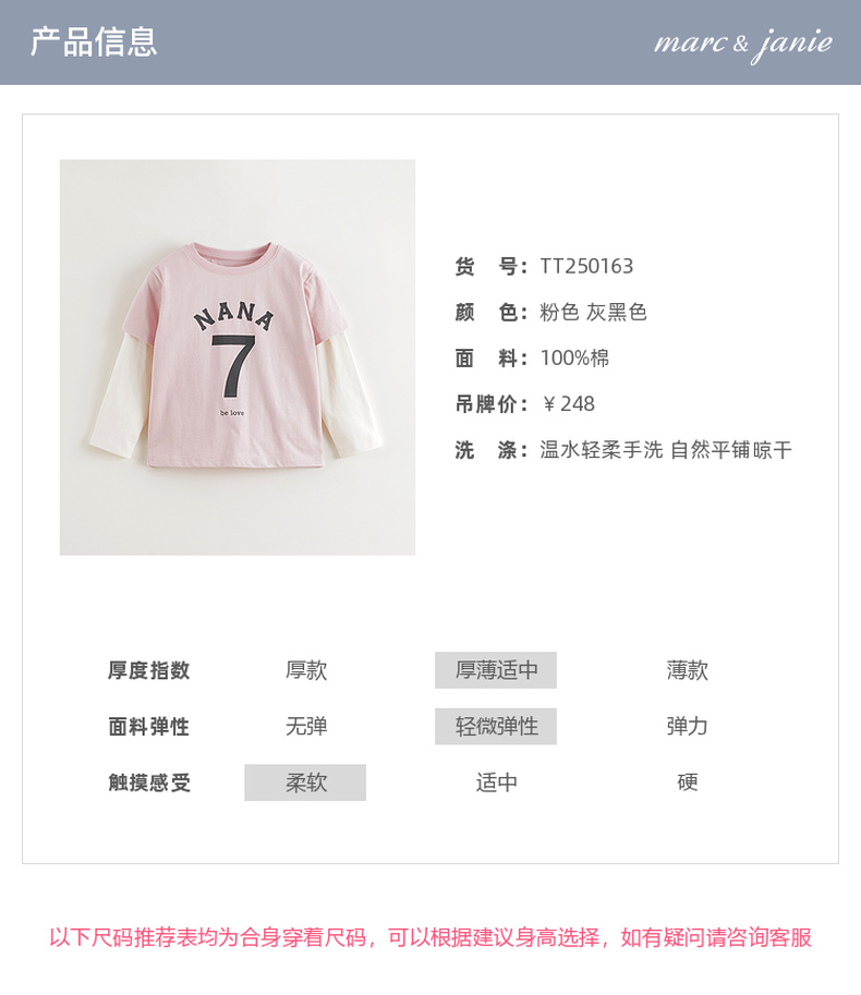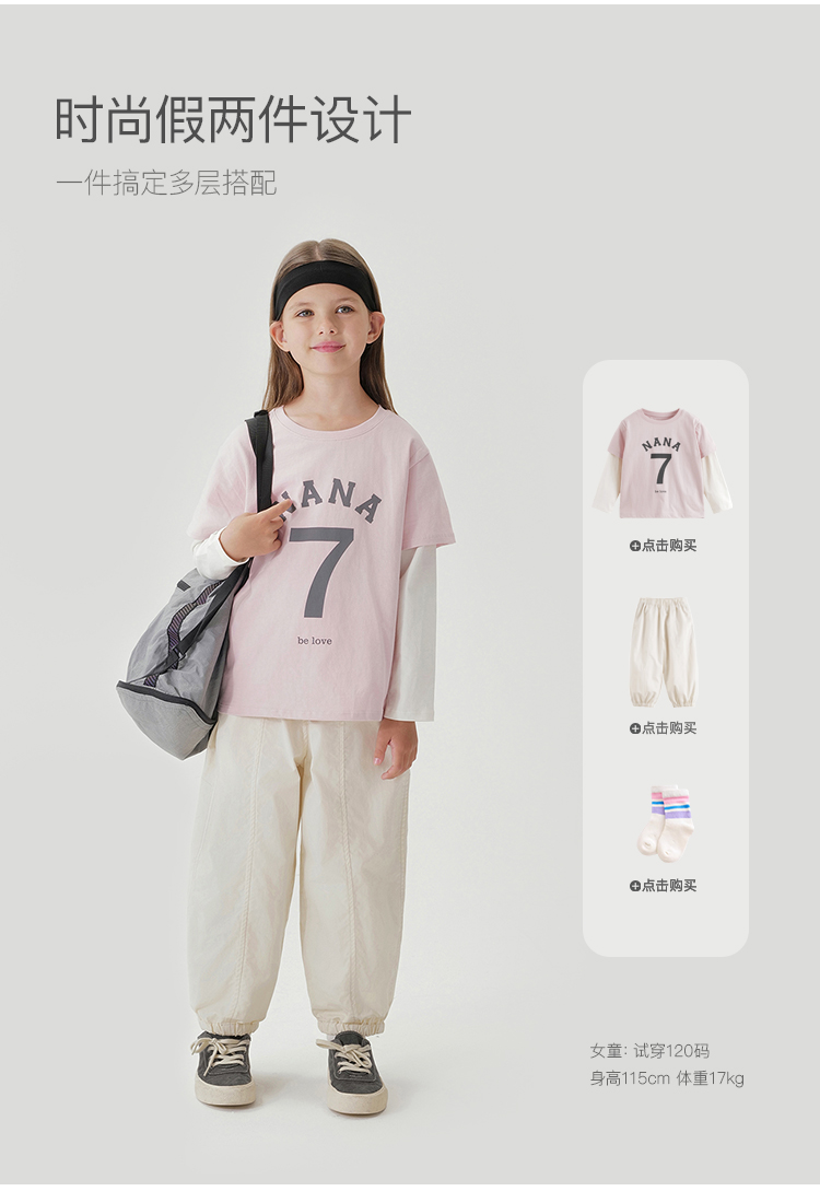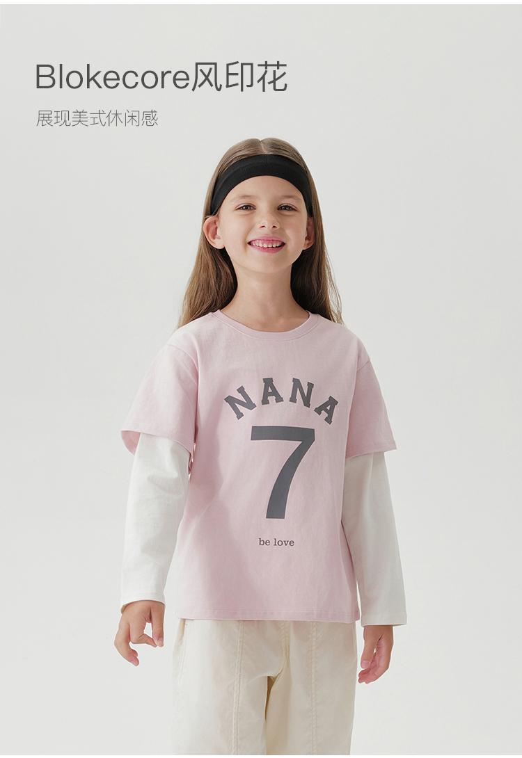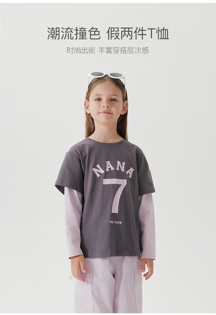 马克珍妮女童潮流时尚假两件T恤 儿童上衣2025年春装新款250163