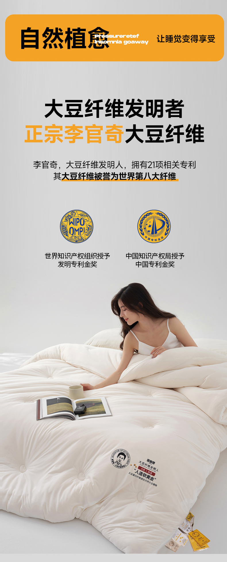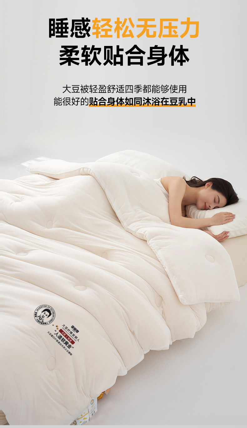 这款被子这么强大,归功于它😛独特的大豆纤维,大豆纤维取材于「天然植物大豆」。