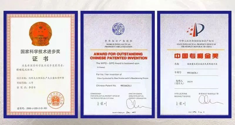 2004年,大豆蛋白纤维技术👏荣获“世界发明专利金奖”和“国家专利局发明专利金奖”。