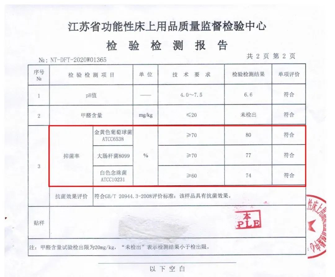 被子对大肠杆菌、白色念珠菌等抑制率均✅符合标准 其中,对金黄色葡萄球菌,抑制率更是高达70-80%!👩孕妈、👧婴儿、所有肤质都可以放心睡!
