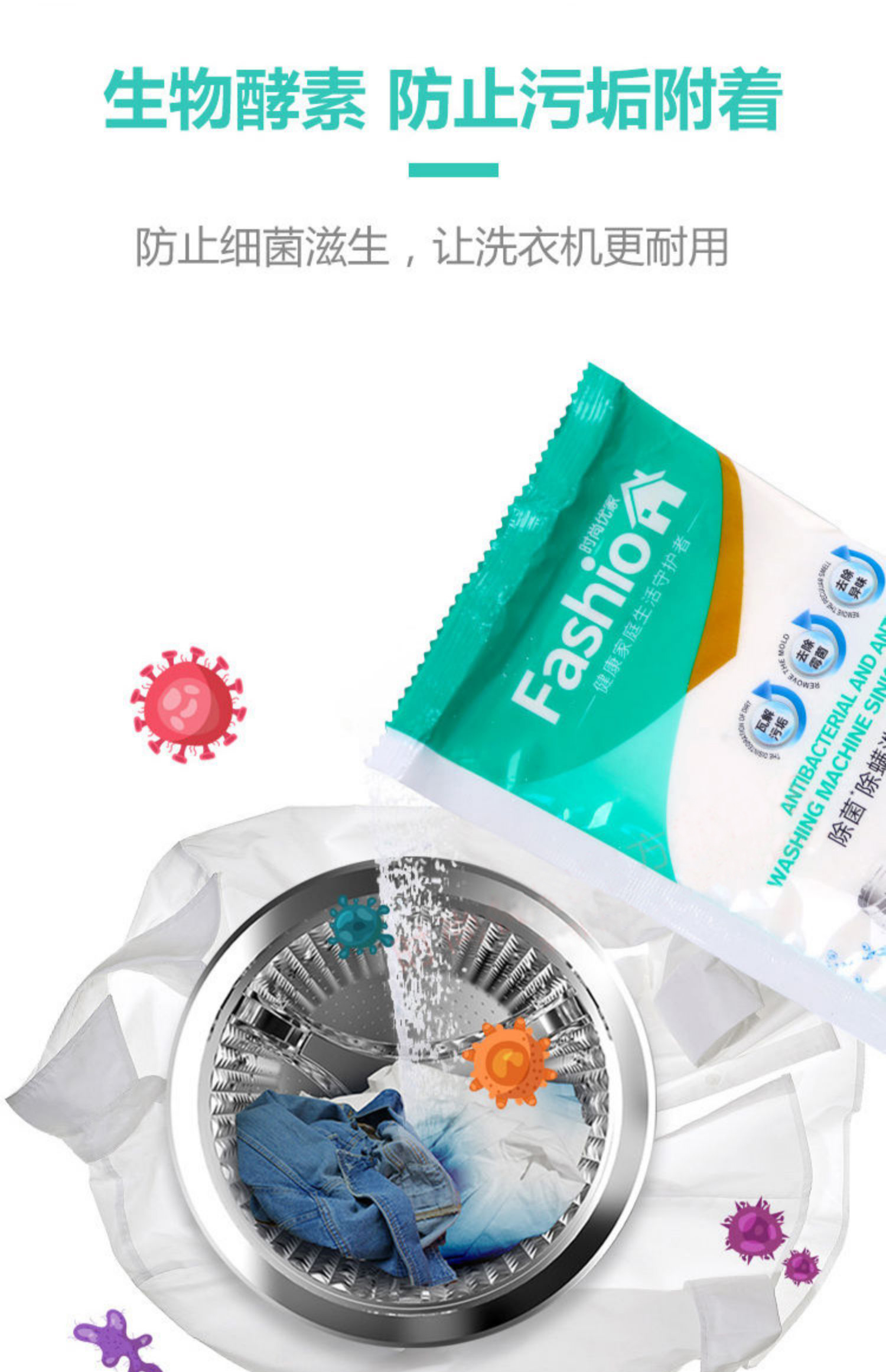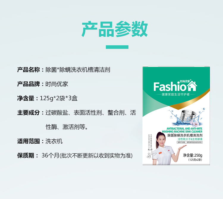 时尚优家除菌除螨洗衣机槽清洗剂2个装*3盒