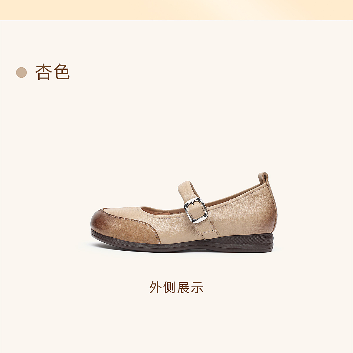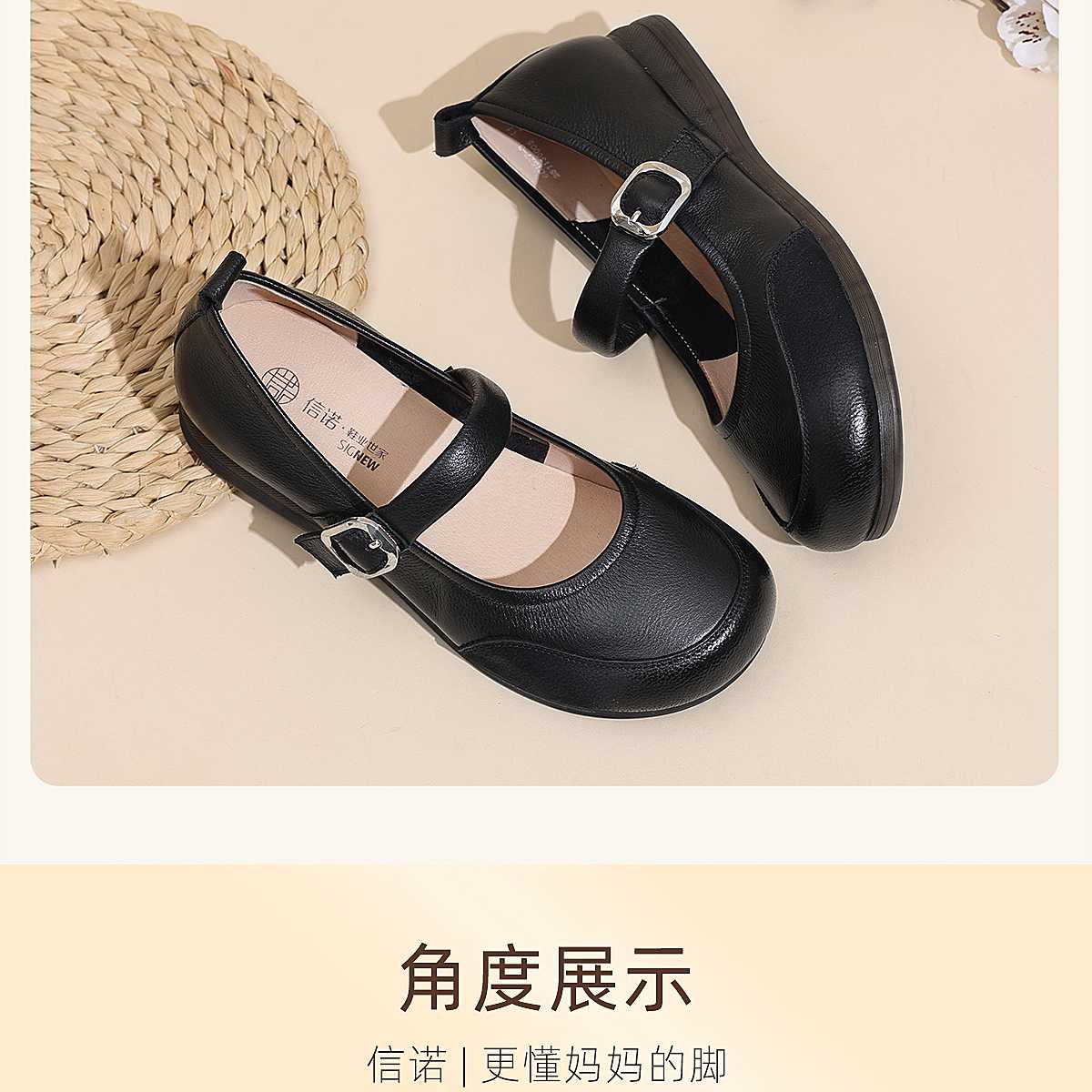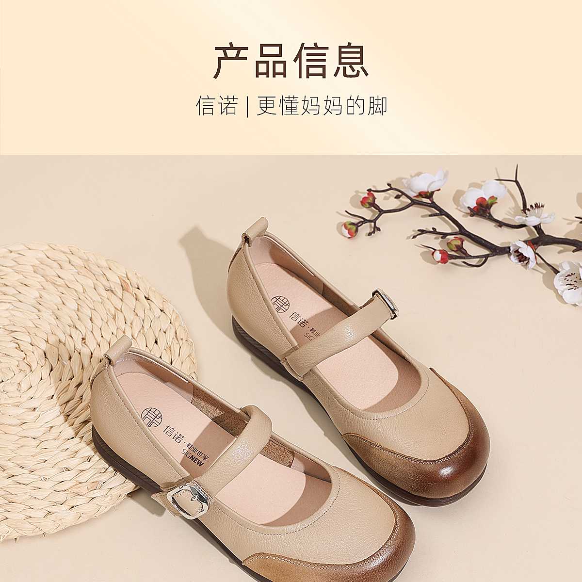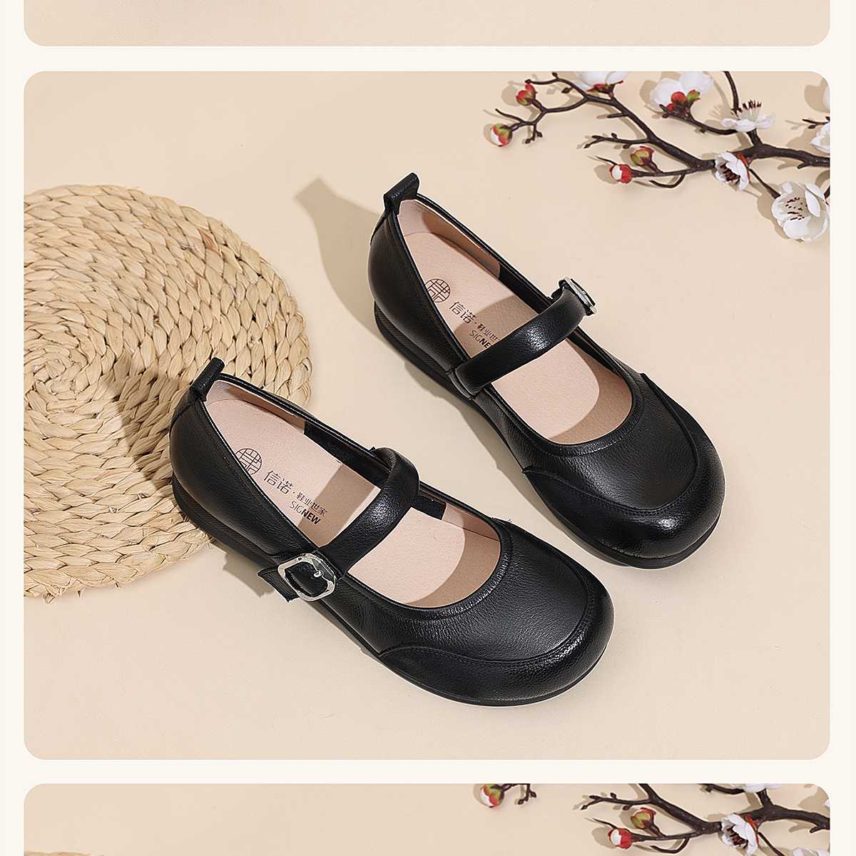 真皮玛丽珍鞋女平底一字扣带软底舒适百搭单鞋6C1527-3