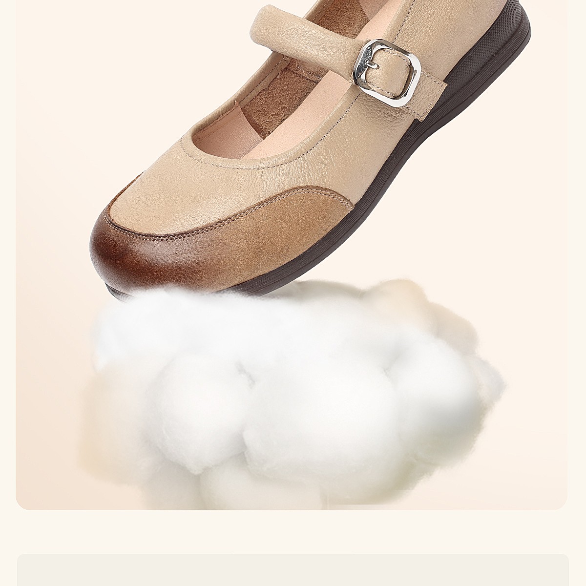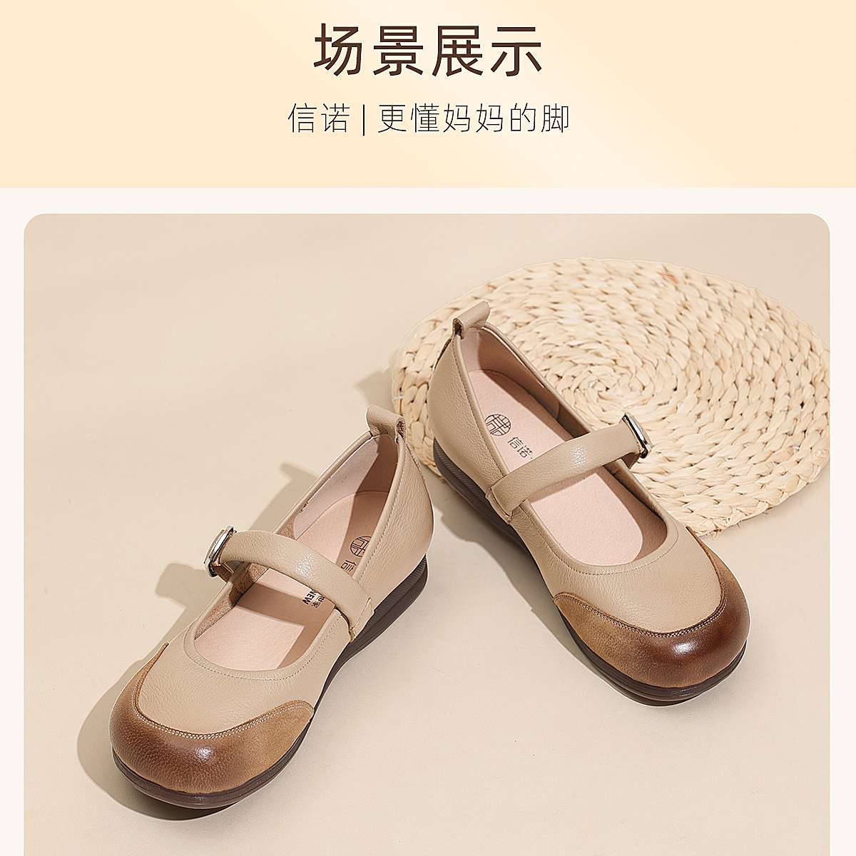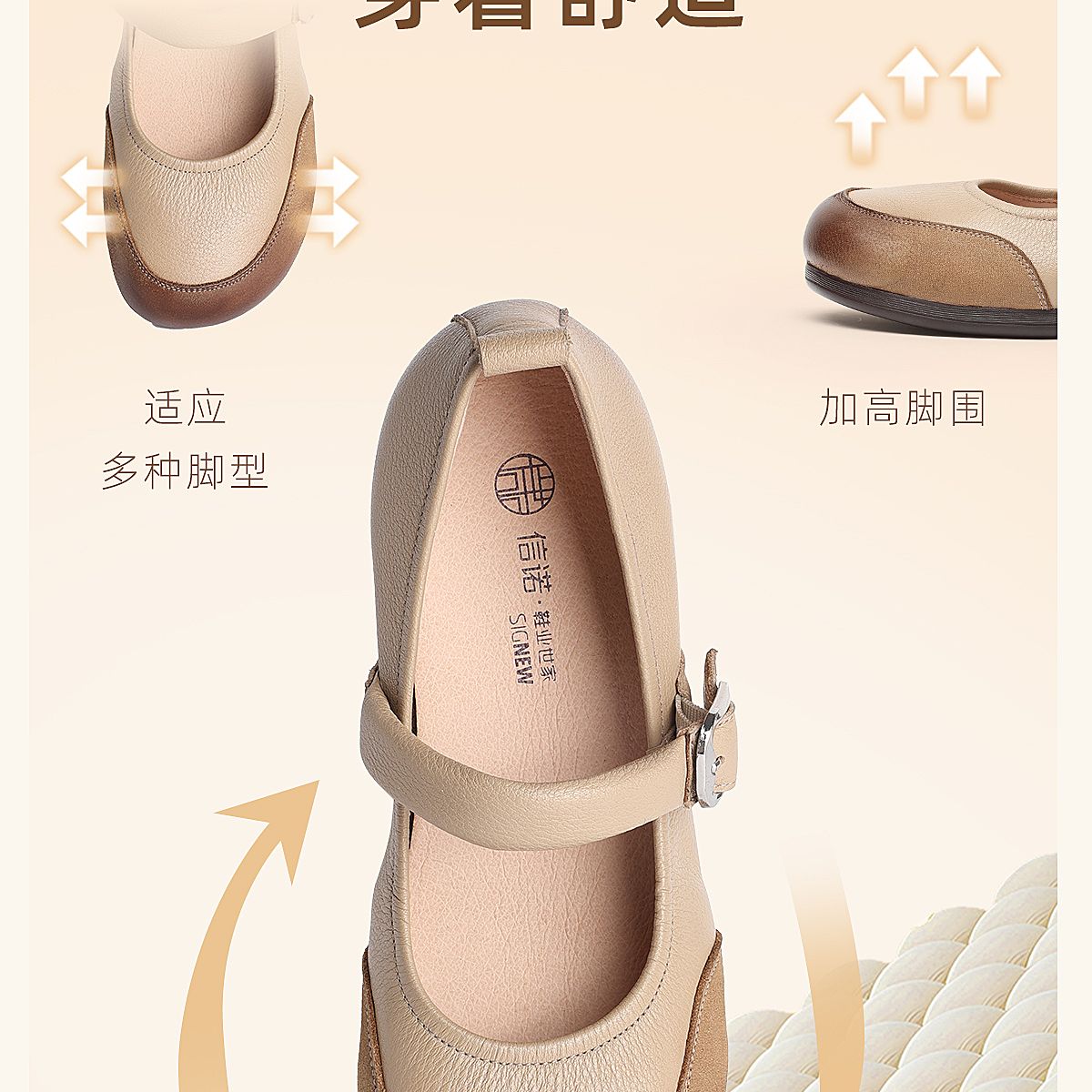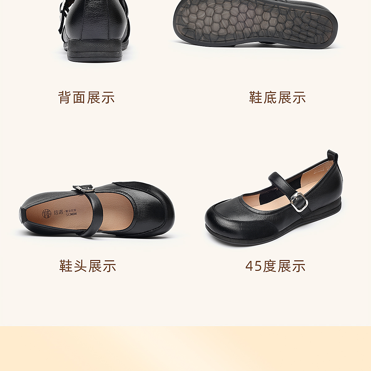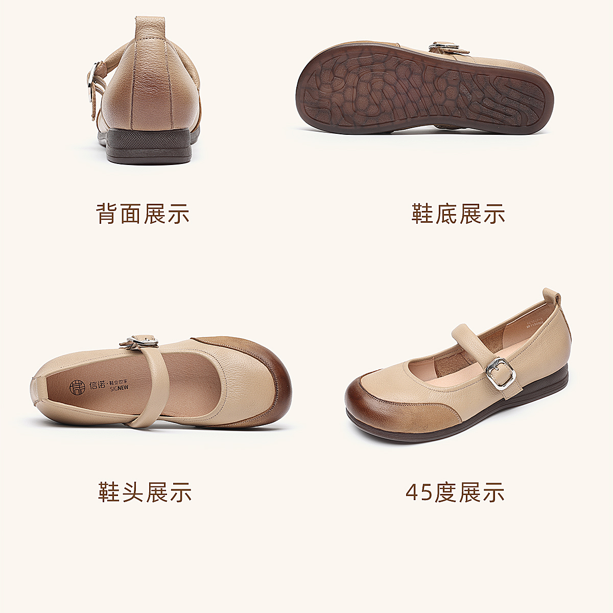 真皮玛丽珍鞋女平底一字扣带软底舒适百搭单鞋6C1527-3