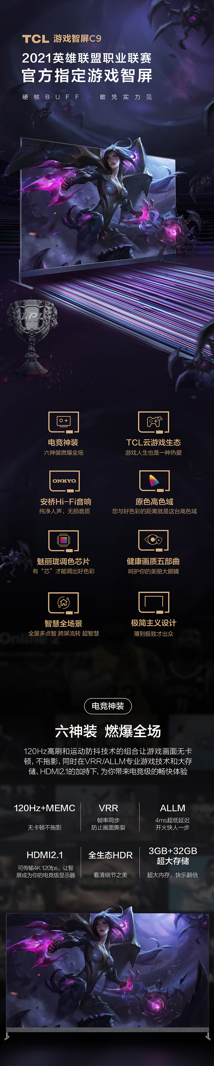 TCL(912386)彩电55C9 55英寸 游戏智屏 原色高色域 安桥Hi-Fi音响 智慧全场景 极简主义设计 智能电视