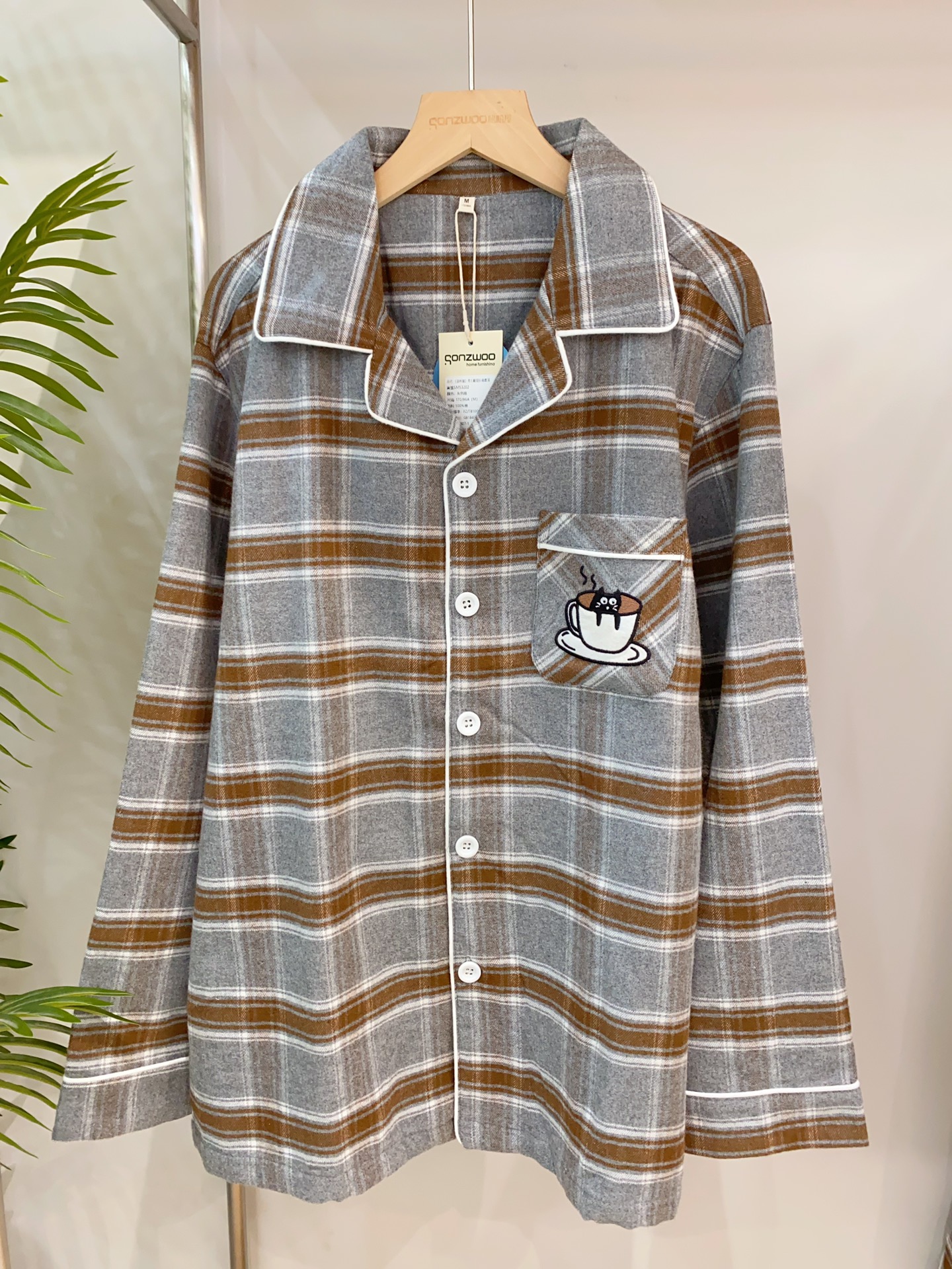 松植屋《茶杯猫》男士磨毛绒布睡衣