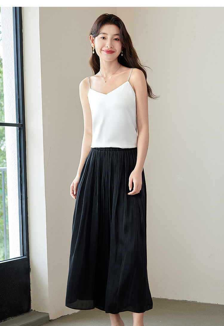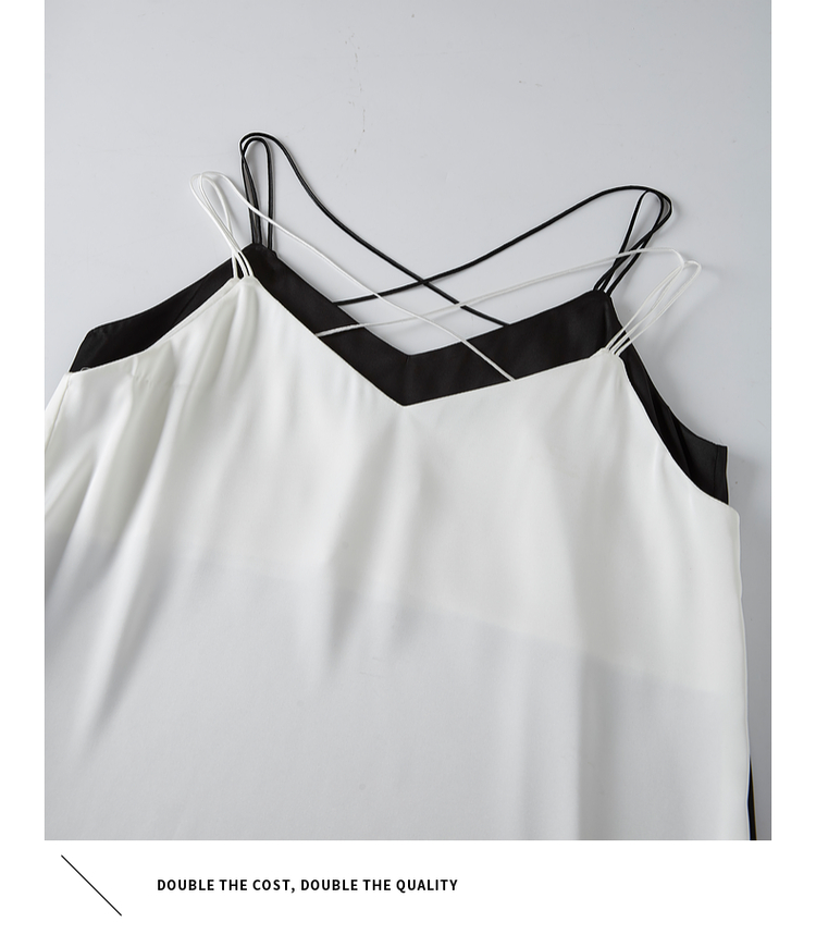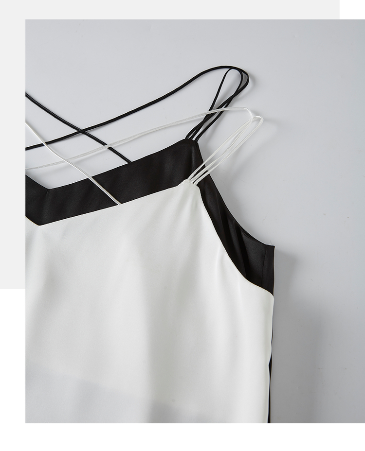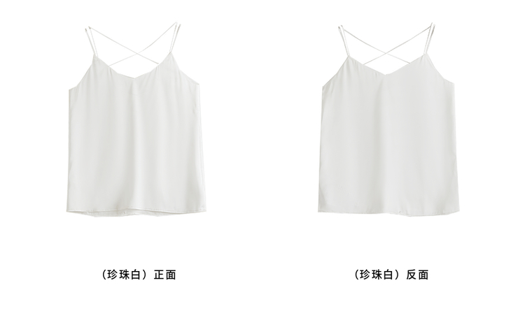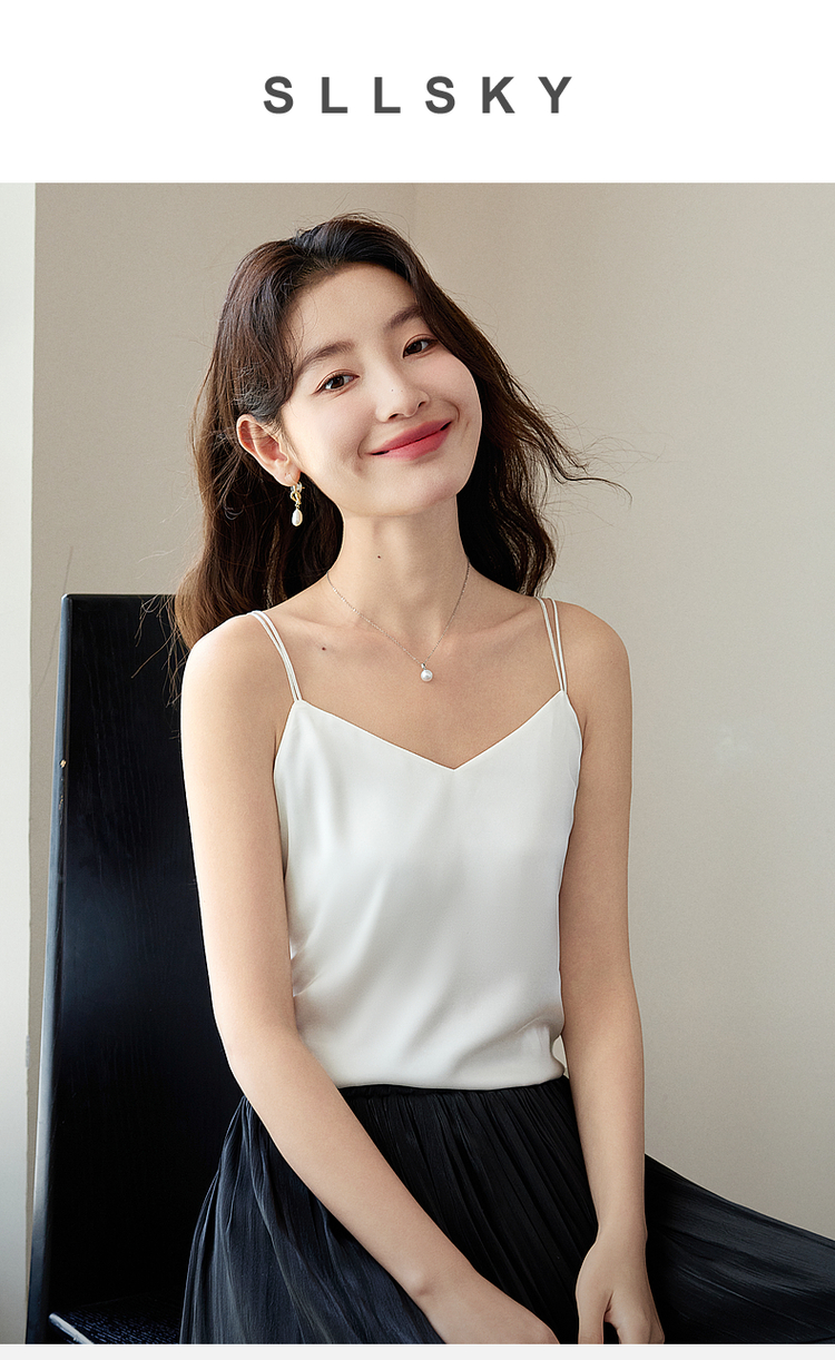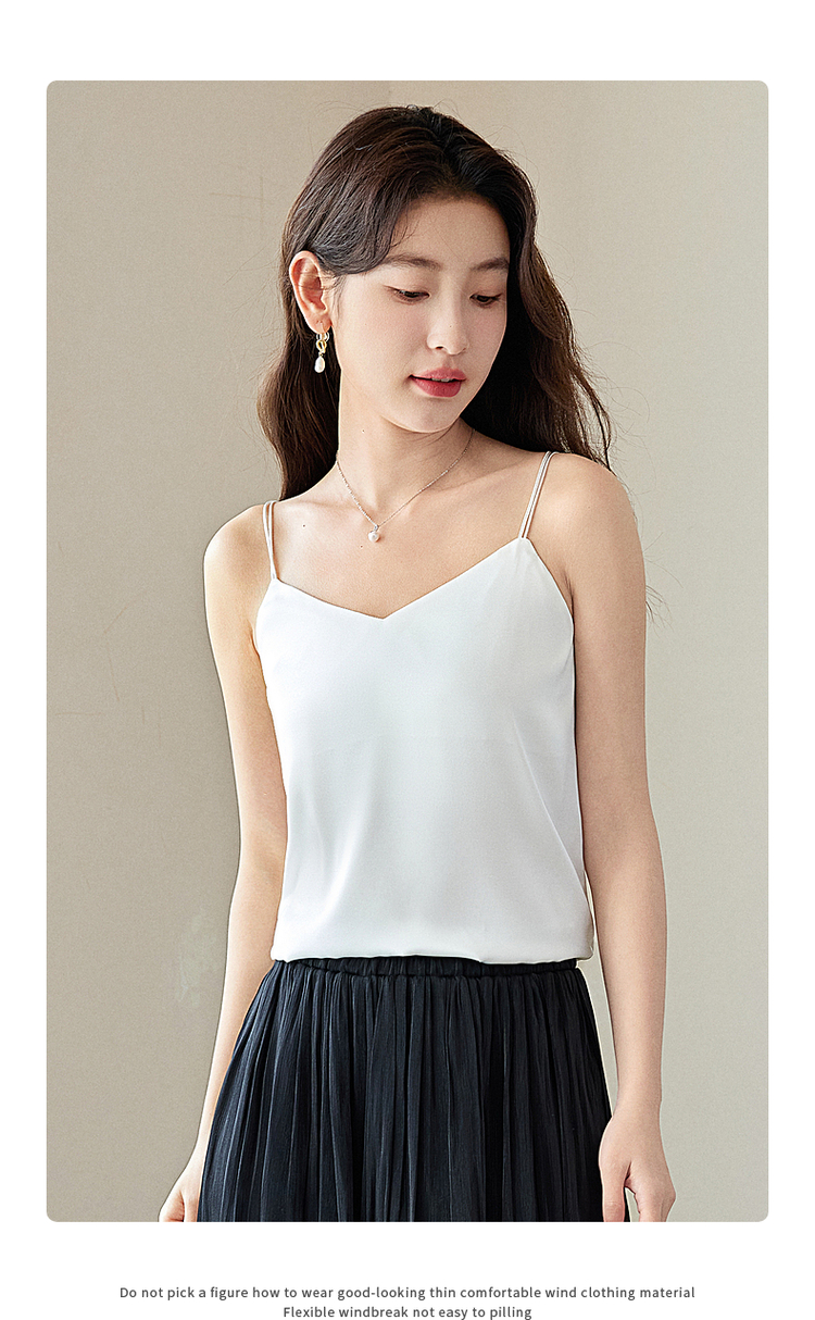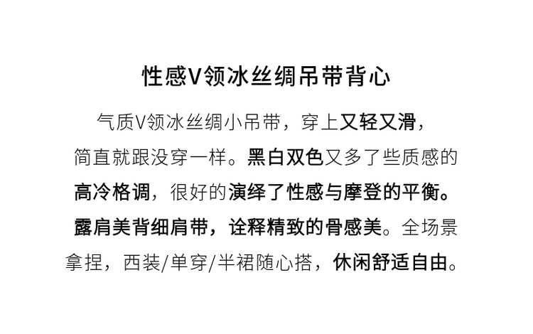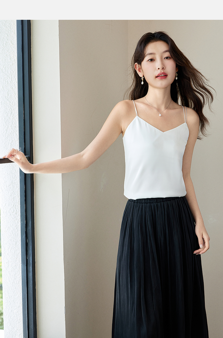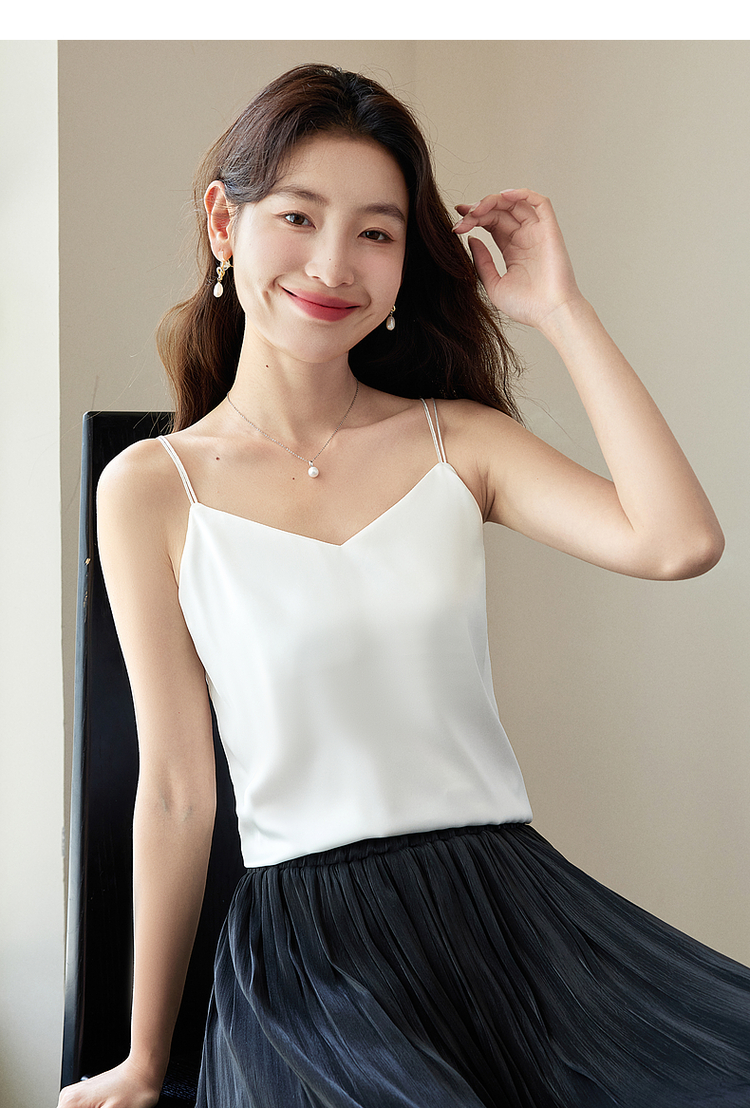 【专属特价】熙世界冰丝缎面吊带背心夏季美背外穿内搭黑白色V领打底衫上衣