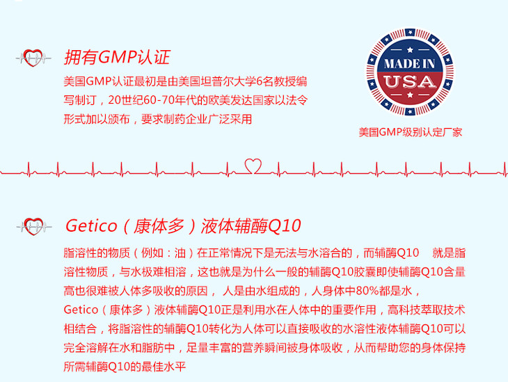 水溶性辅酶Q10 473ml/瓶 美国进口 康体多Getico 辅酶含量150mg 一瓶约半个月的量