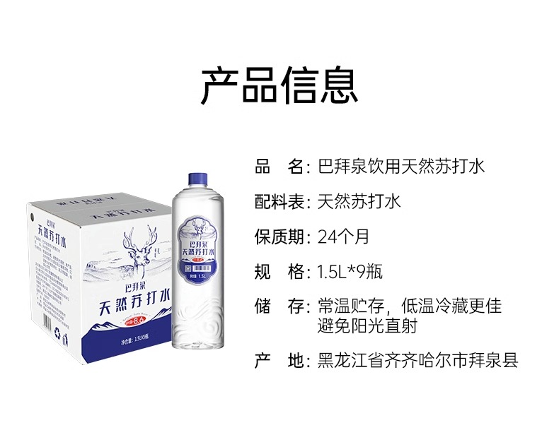 巴拜泉天然苏打水 1.5L*9