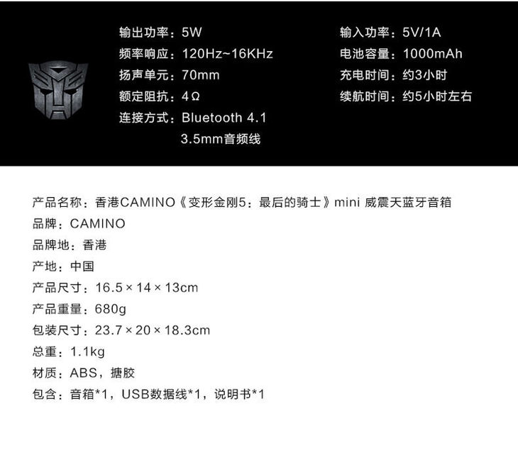 CAMINO 威震天(变形金刚)Mini头盔蓝牙音箱