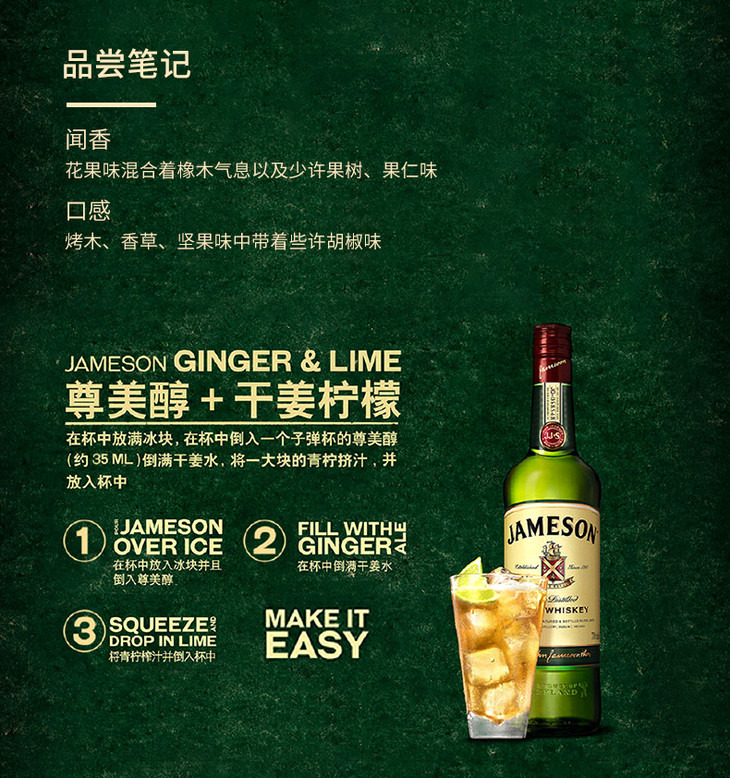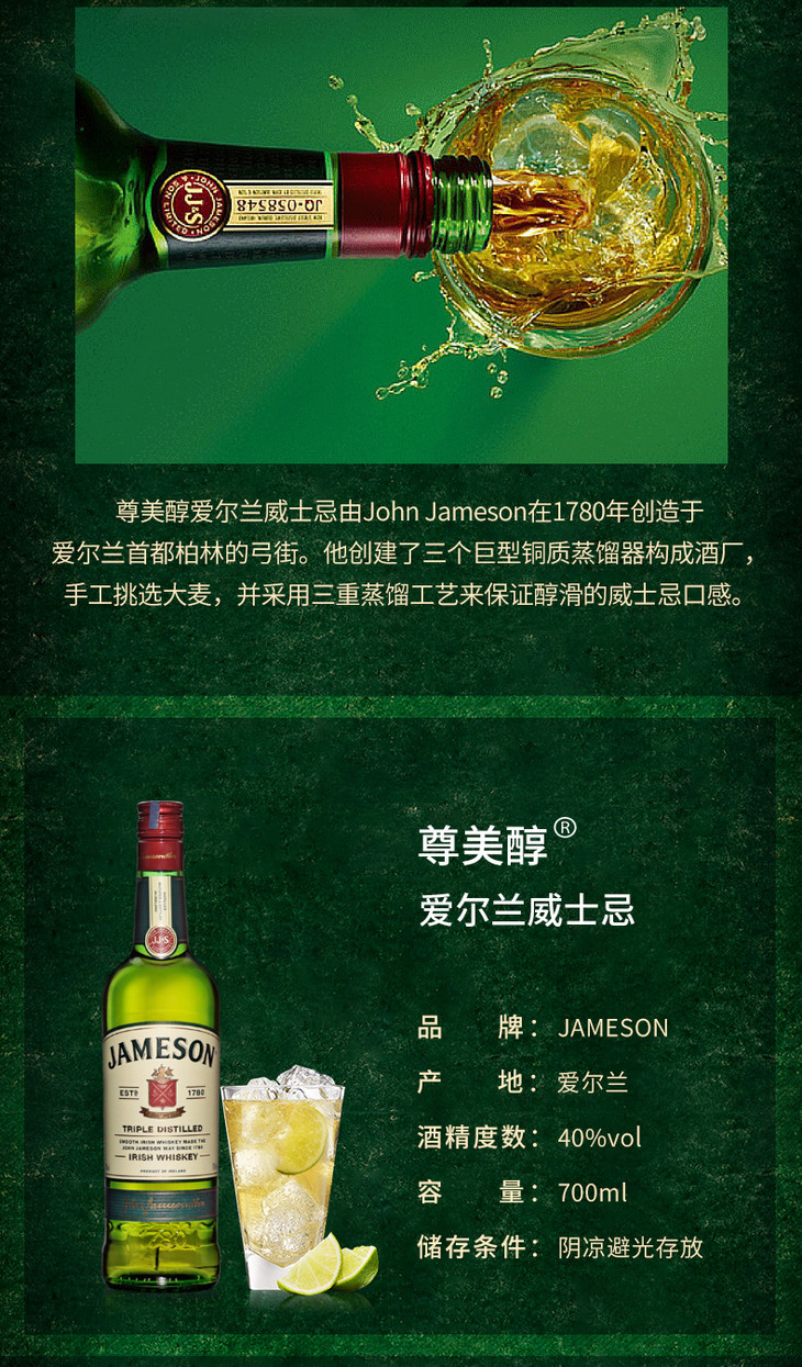 尊美醇 爱尔兰威士忌40度 700ml/1瓶/2瓶