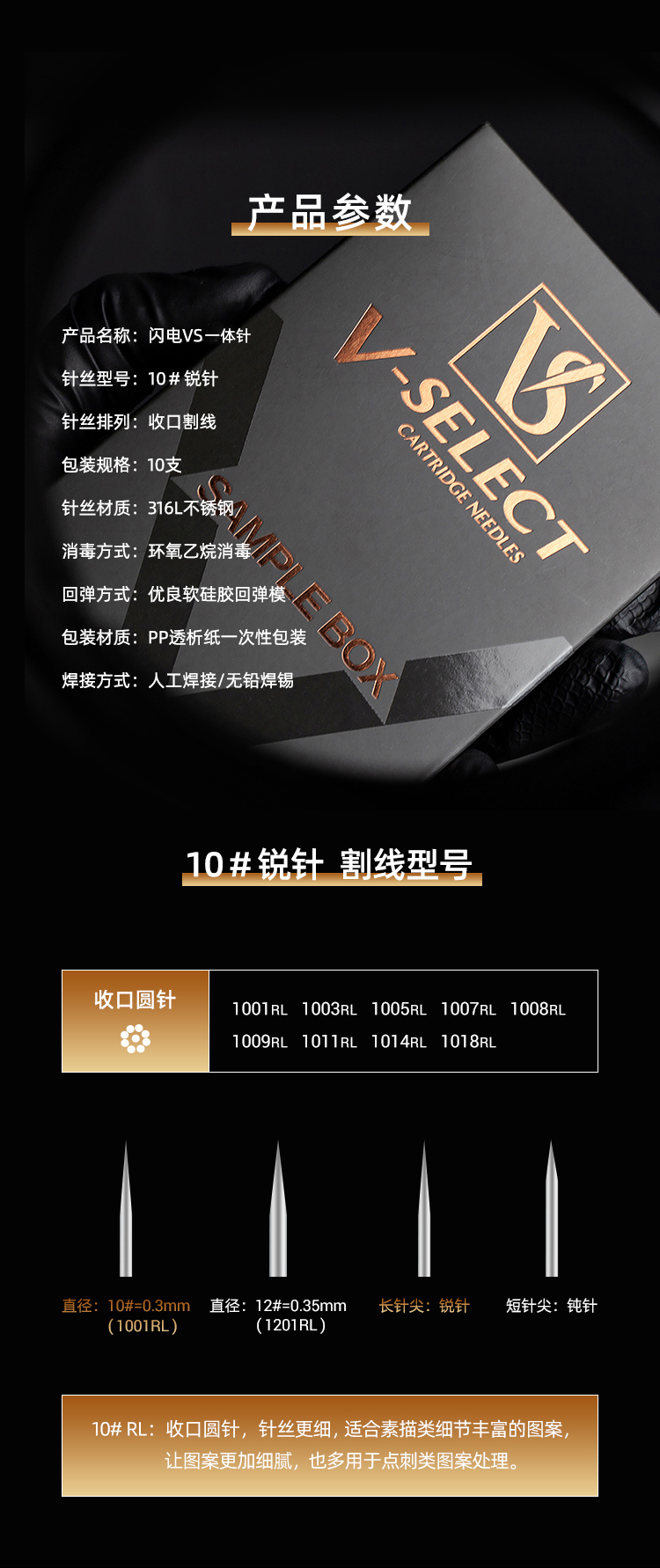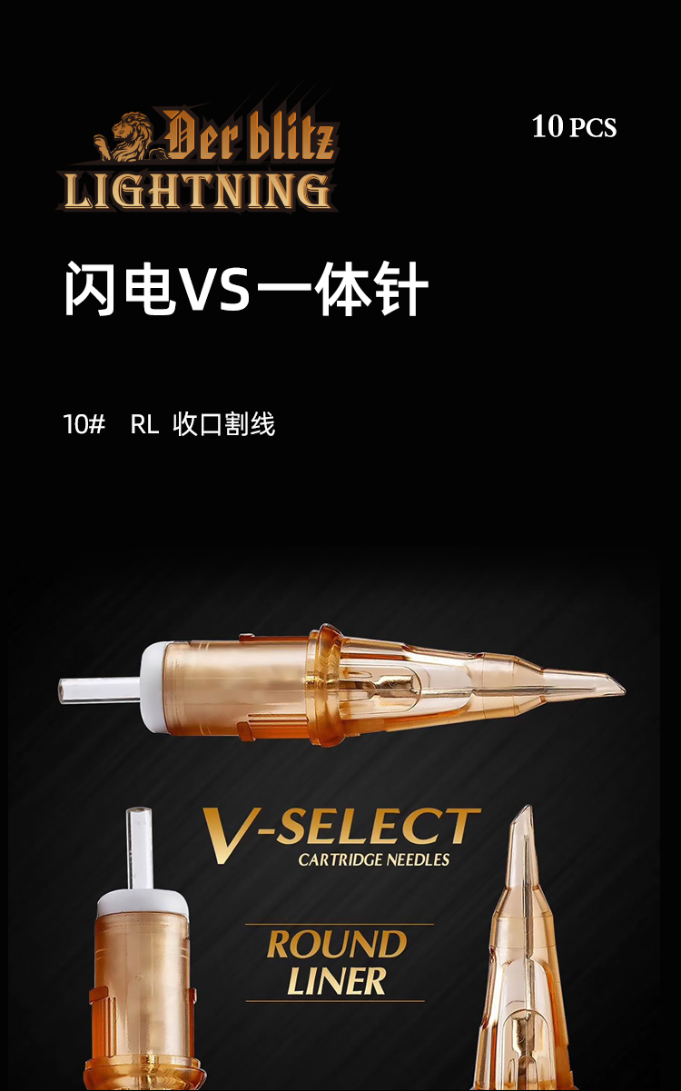 闪电VS一体针10号收口紧口圆针纹身笔专用短针