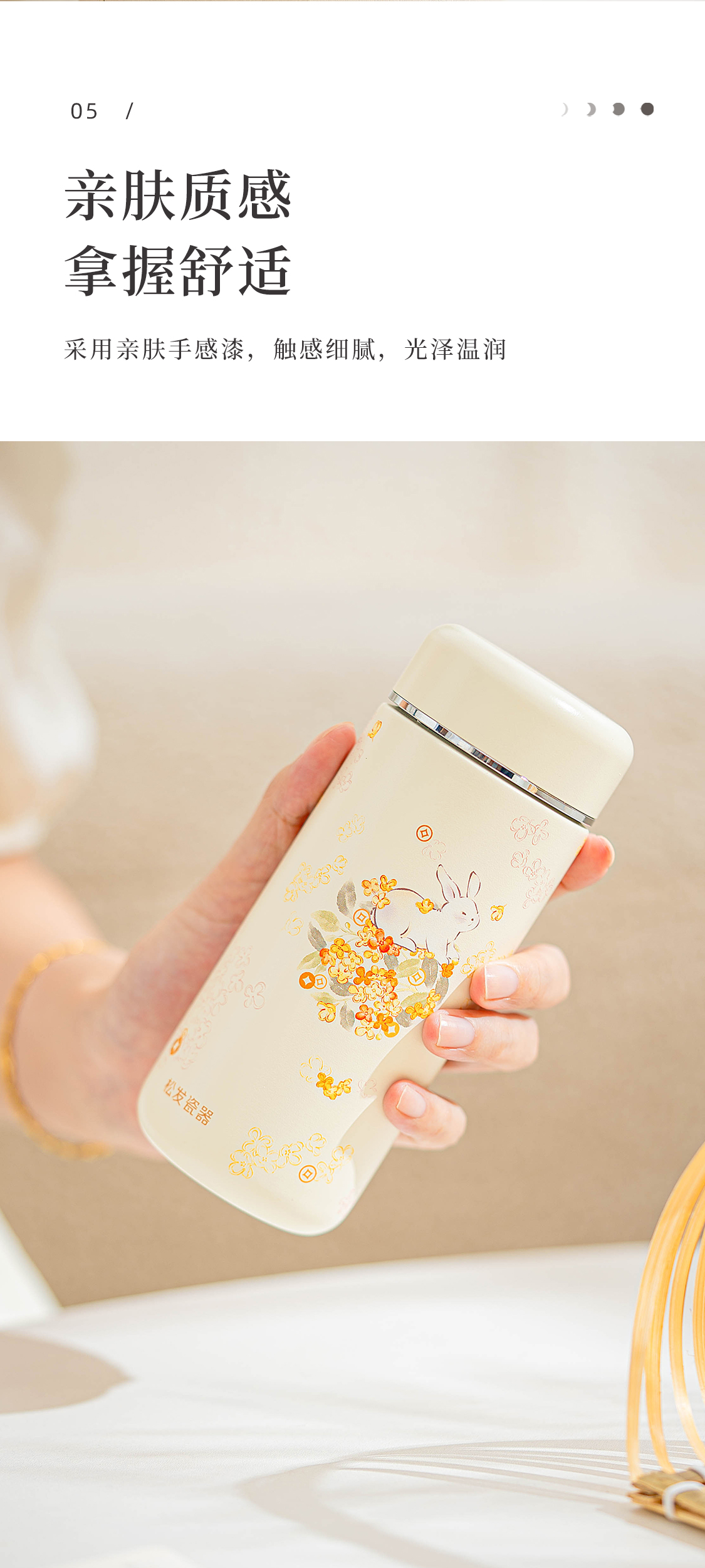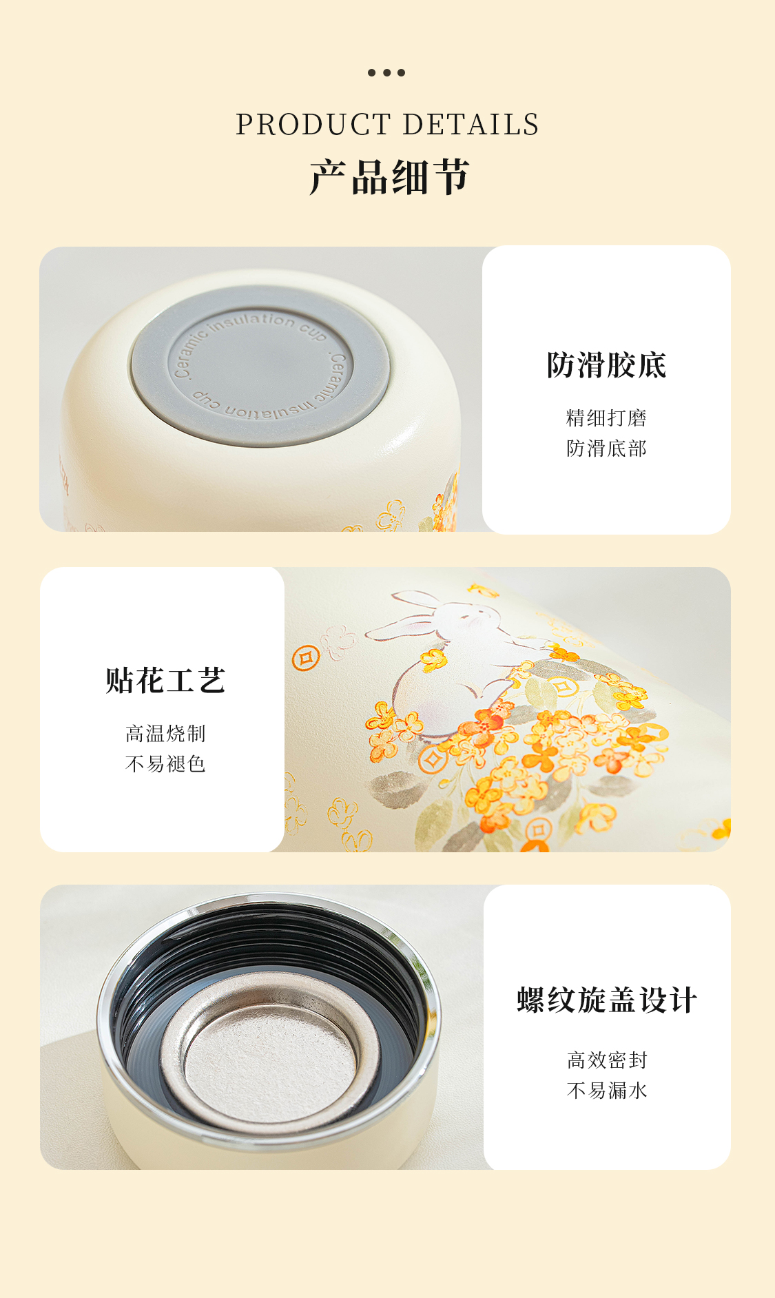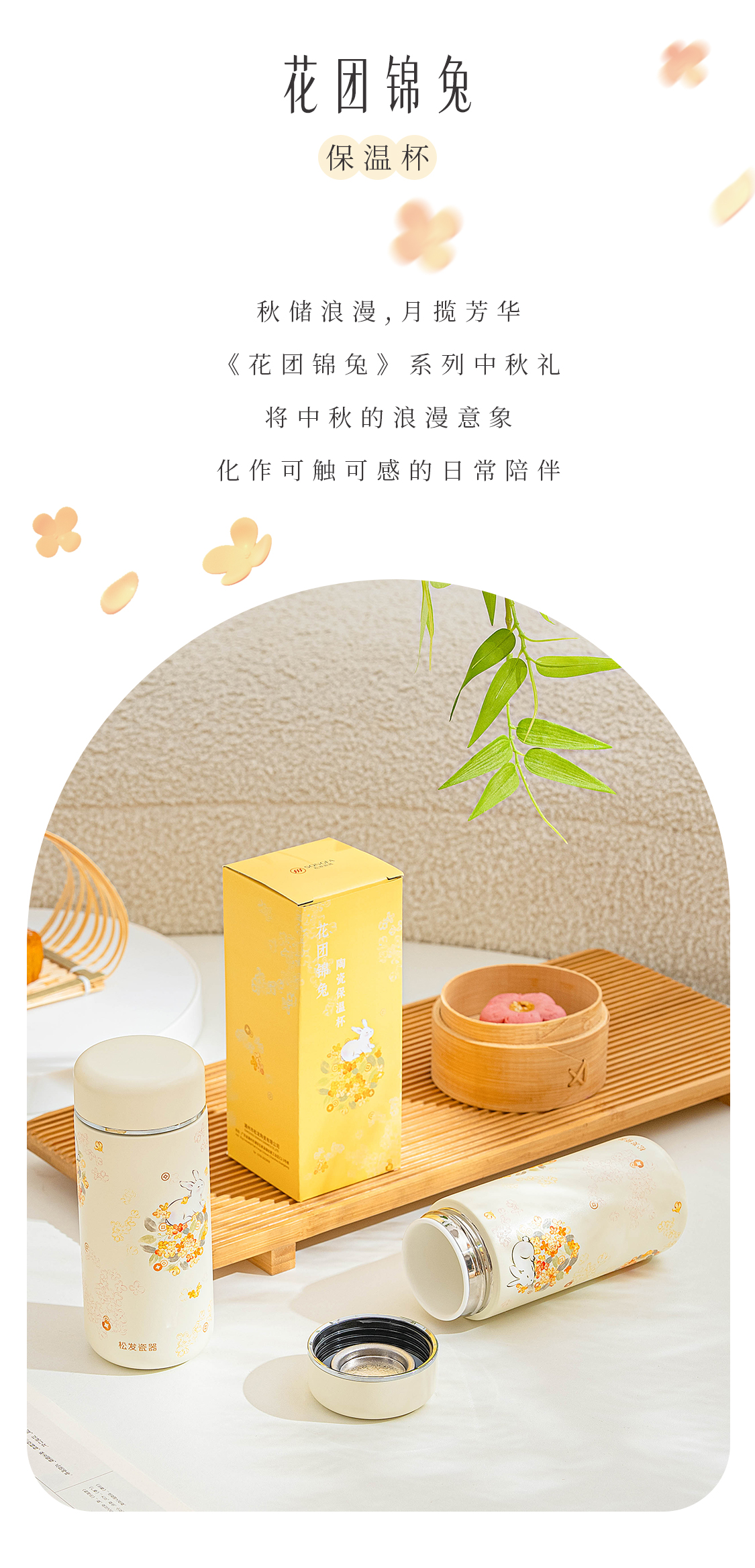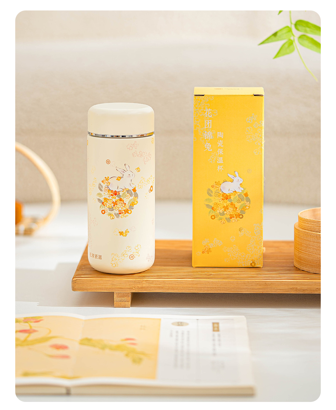 花团锦兔陶瓷保温杯