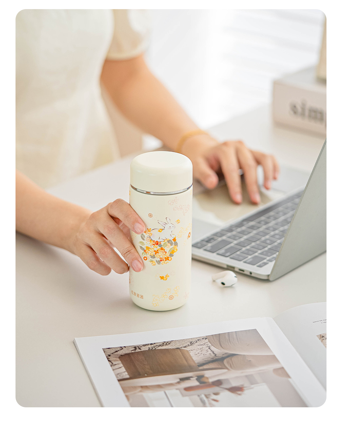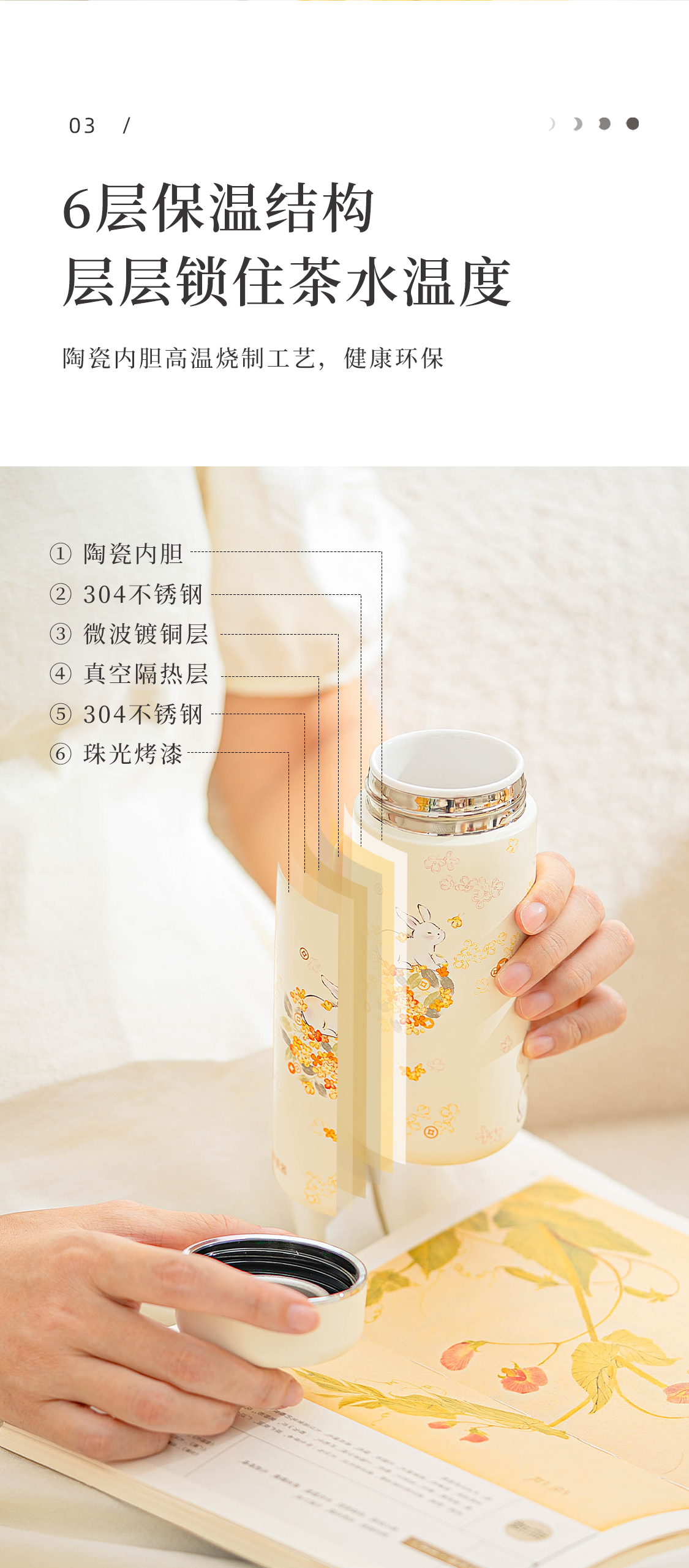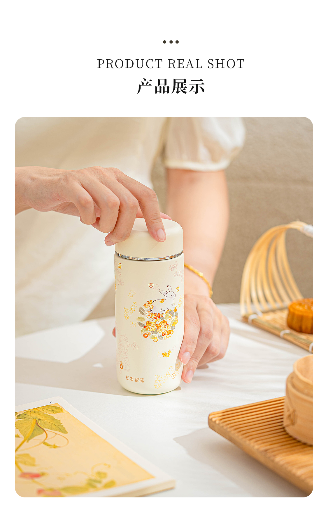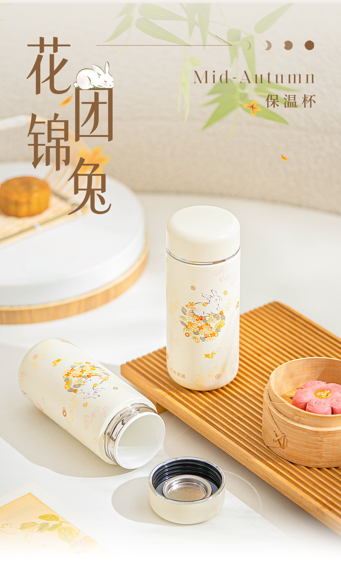 花团锦兔陶瓷保温杯