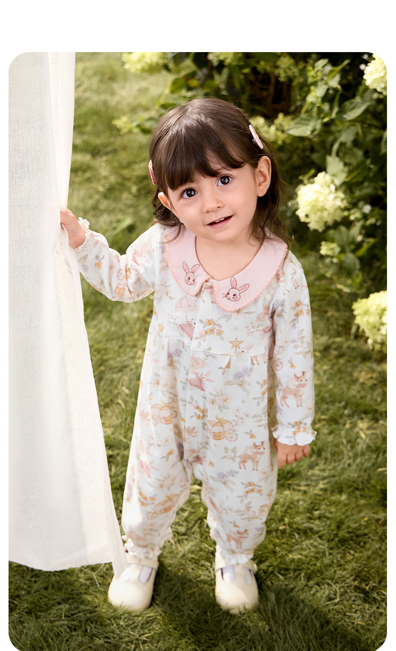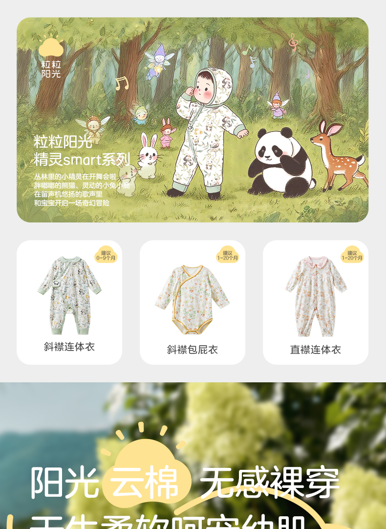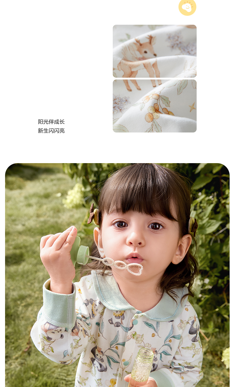 粒粒阳光婴儿衣服精灵森系连体衣阳光棉哈衣宝宝爬服新款