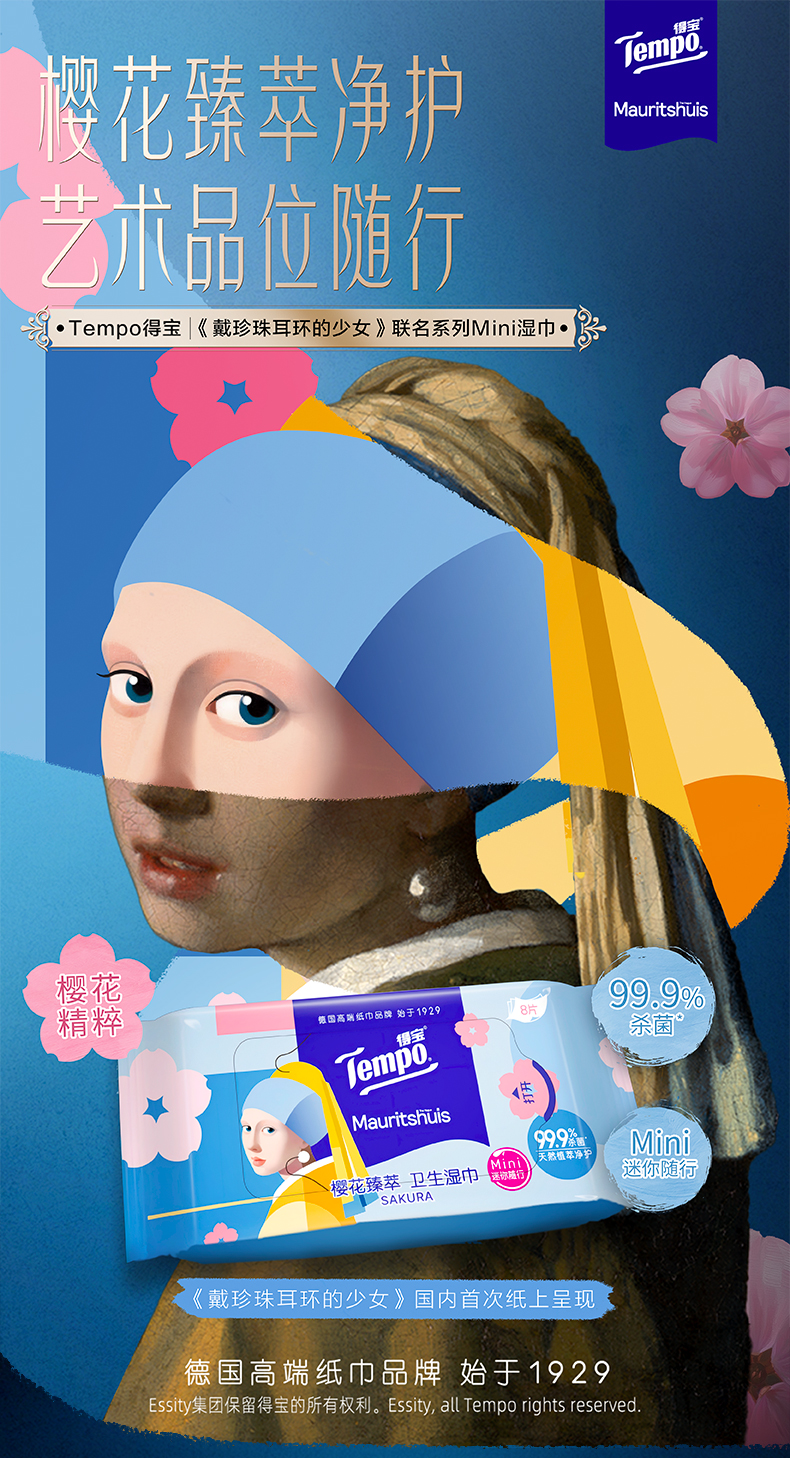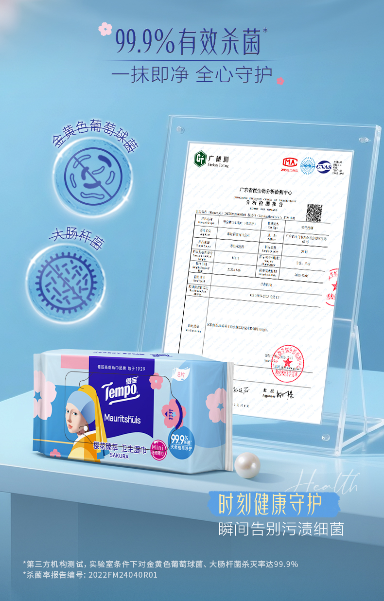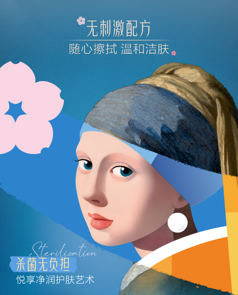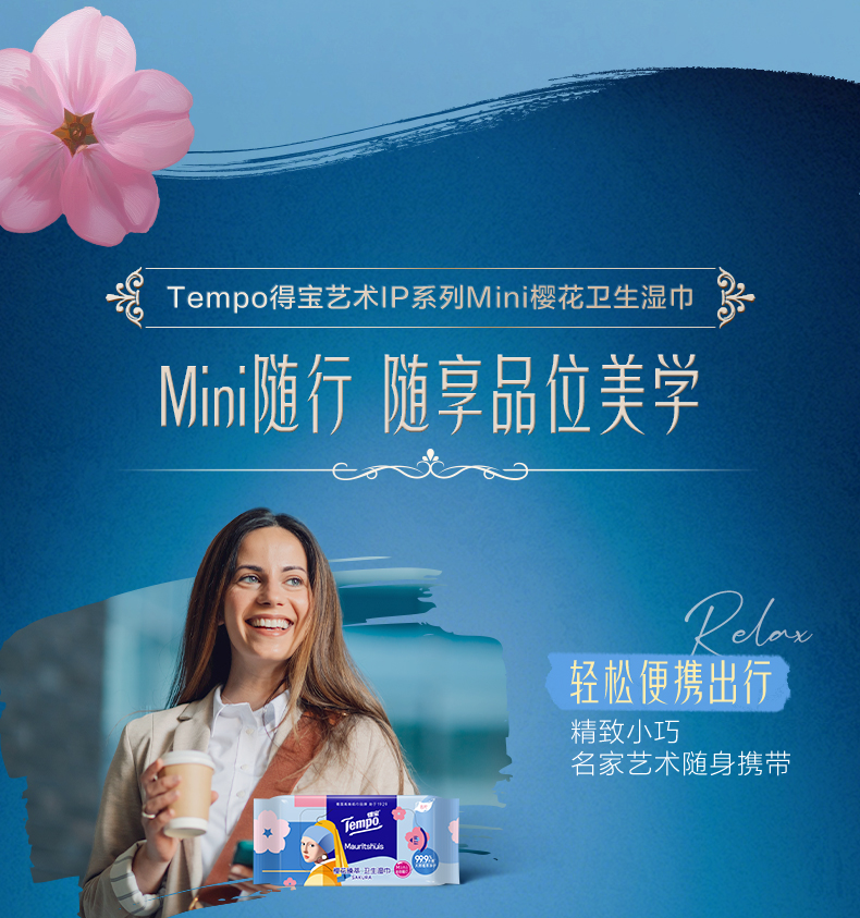 得宝|《戴珍珠耳环的少女》联名 樱花臻萃 卫生湿巾 8片/包x6小包