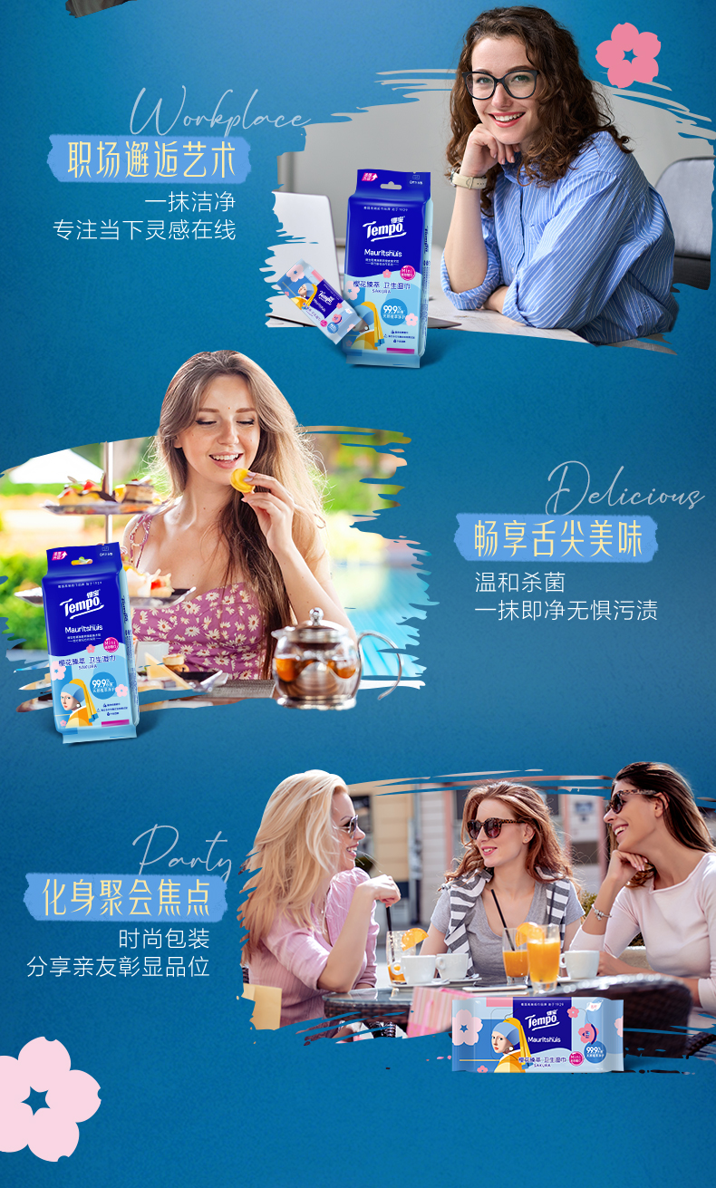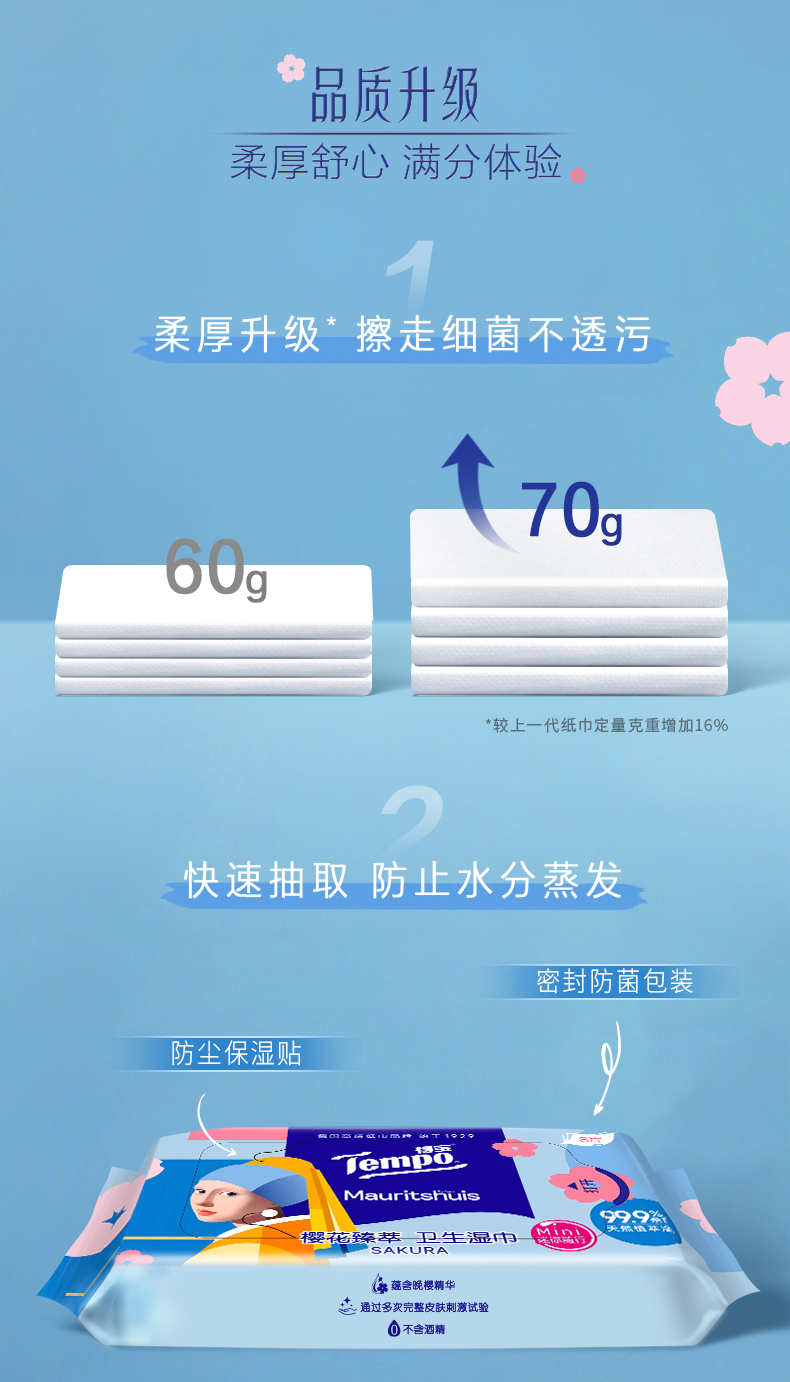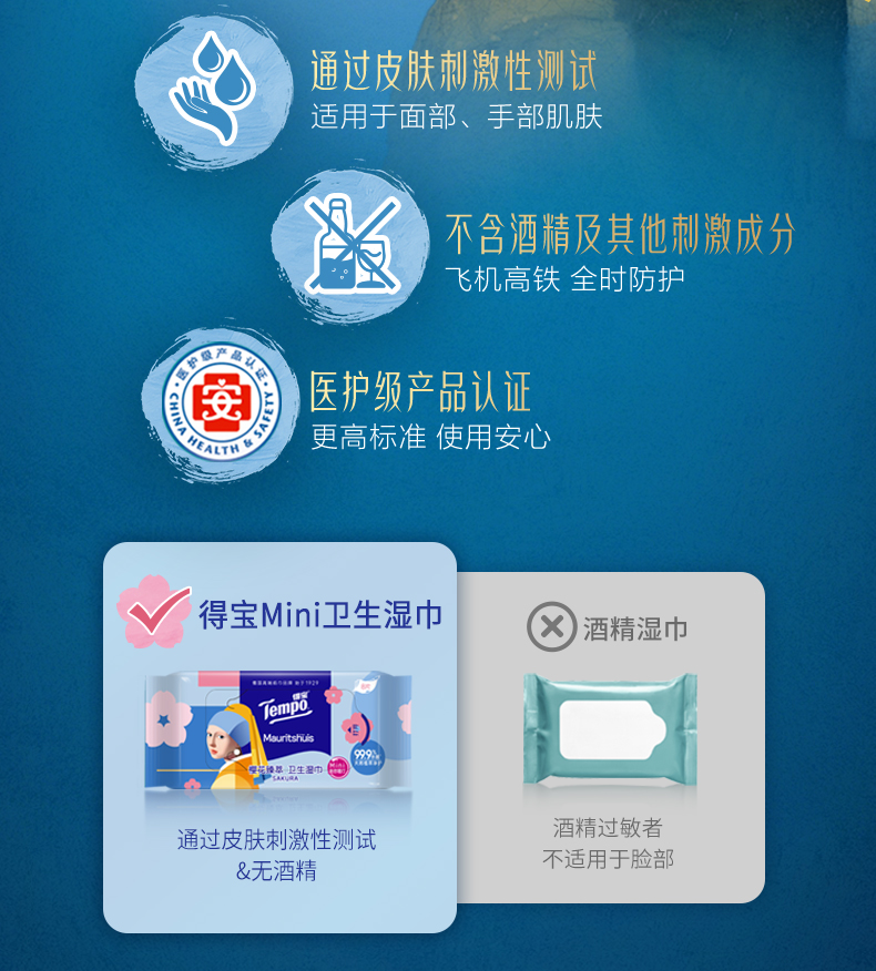 得宝|《戴珍珠耳环的少女》联名 樱花臻萃 卫生湿巾 8片/包x6小包