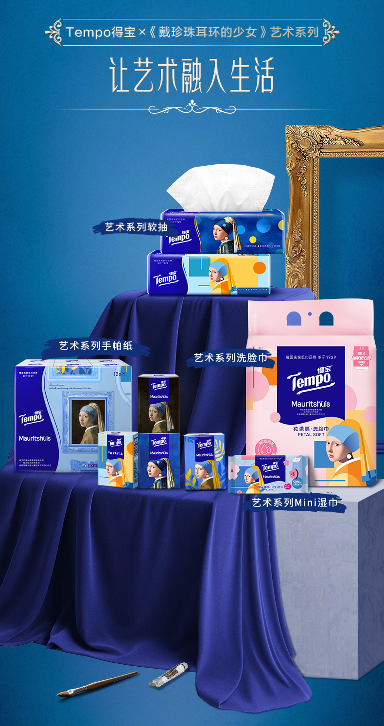 得宝|戴珍珠耳环的少女联名无香抽纸90抽8包 加厚联名款