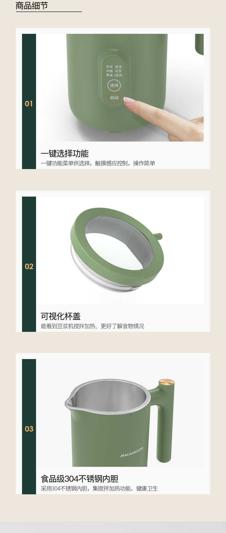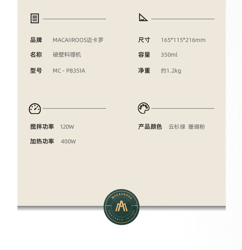 Macaiiroos/迈卡罗 MC-PB351A豆浆机迷你破壁机多功能辅食料理机