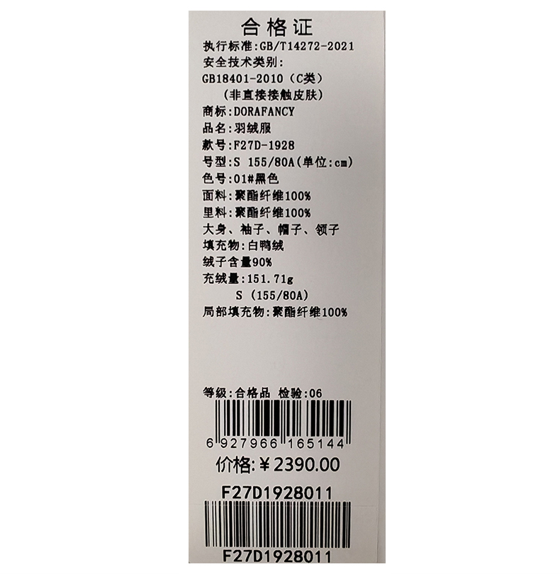 朵拉梵西羽绒服F27D1928