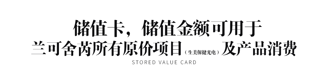 lkx【储值膨胀卡】 充5000得7500/充20000得33000 储值金额可用于兰可舍芮院店所有原价项目(生美/保健/光电)及产品消费
