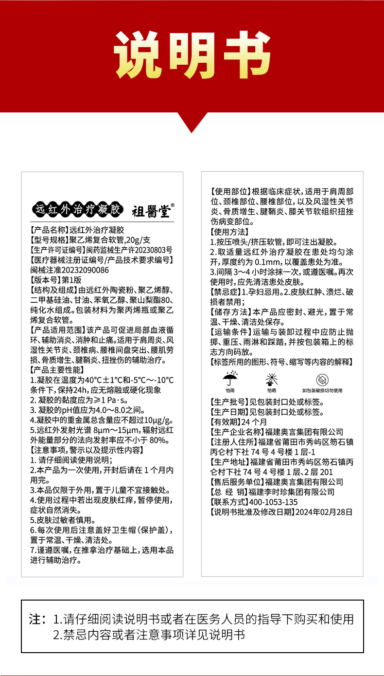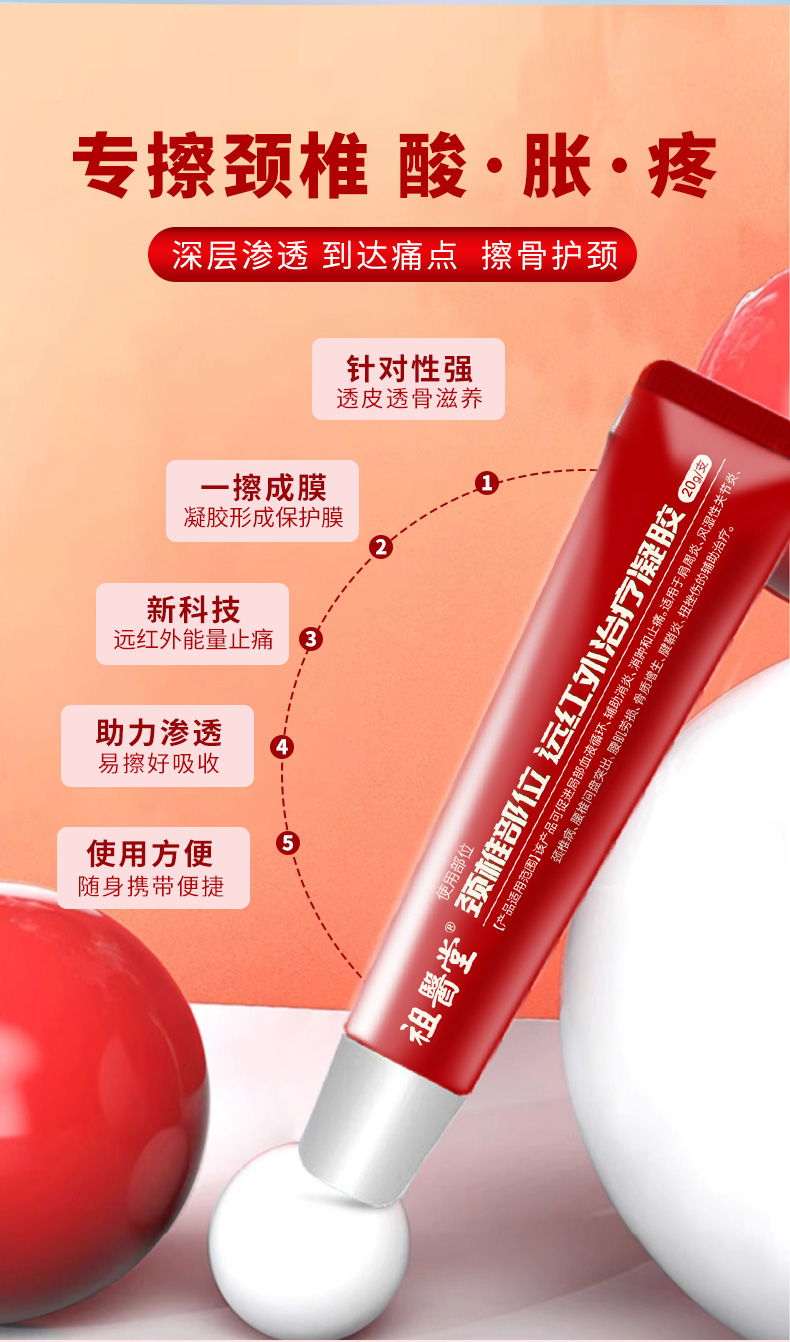 祖医堂颈椎部位远红外治疗凝胶 专擦颈椎酸麻肿痛僵 一擦成膜 深层渗透 直达痛点